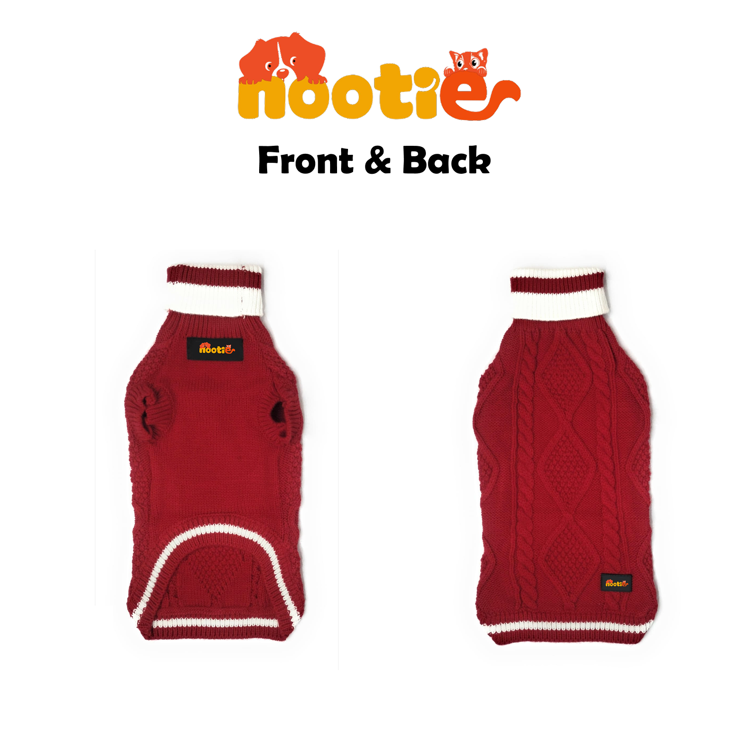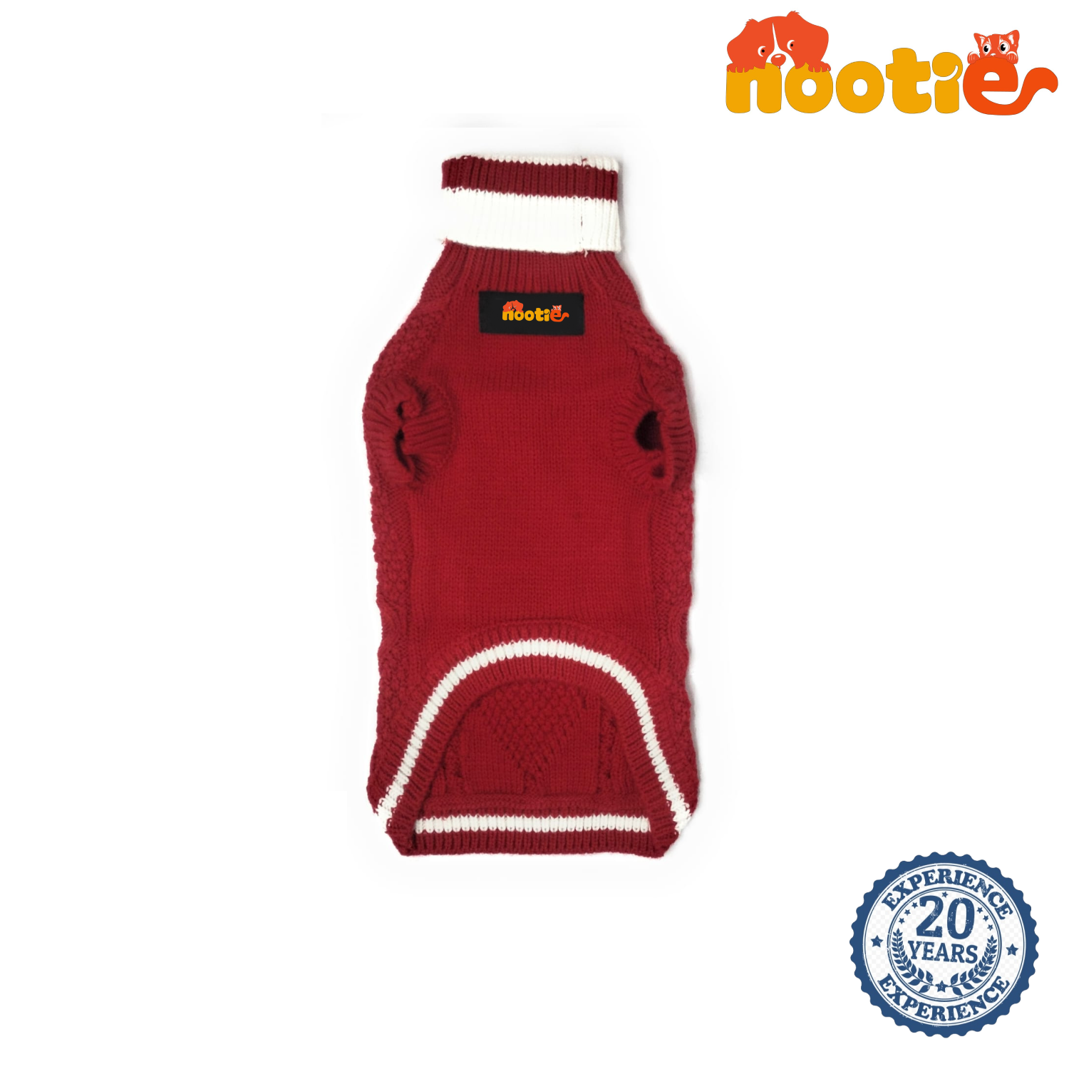 Nootie Dog High Neck Sweater, Red – Soft, Warm & Lightweight Comfort. Made from premium, ultra-soft knit material, this sweater offers gentle warmth and a breathable fit. The ribbed high neck and hem provide a secure yet flexible hold, making dressing your pet easy and hassle-free. With its timeless red cable-knit pattern and white stripe accents, it’s a must-have for your dog’s winter wardrobe.