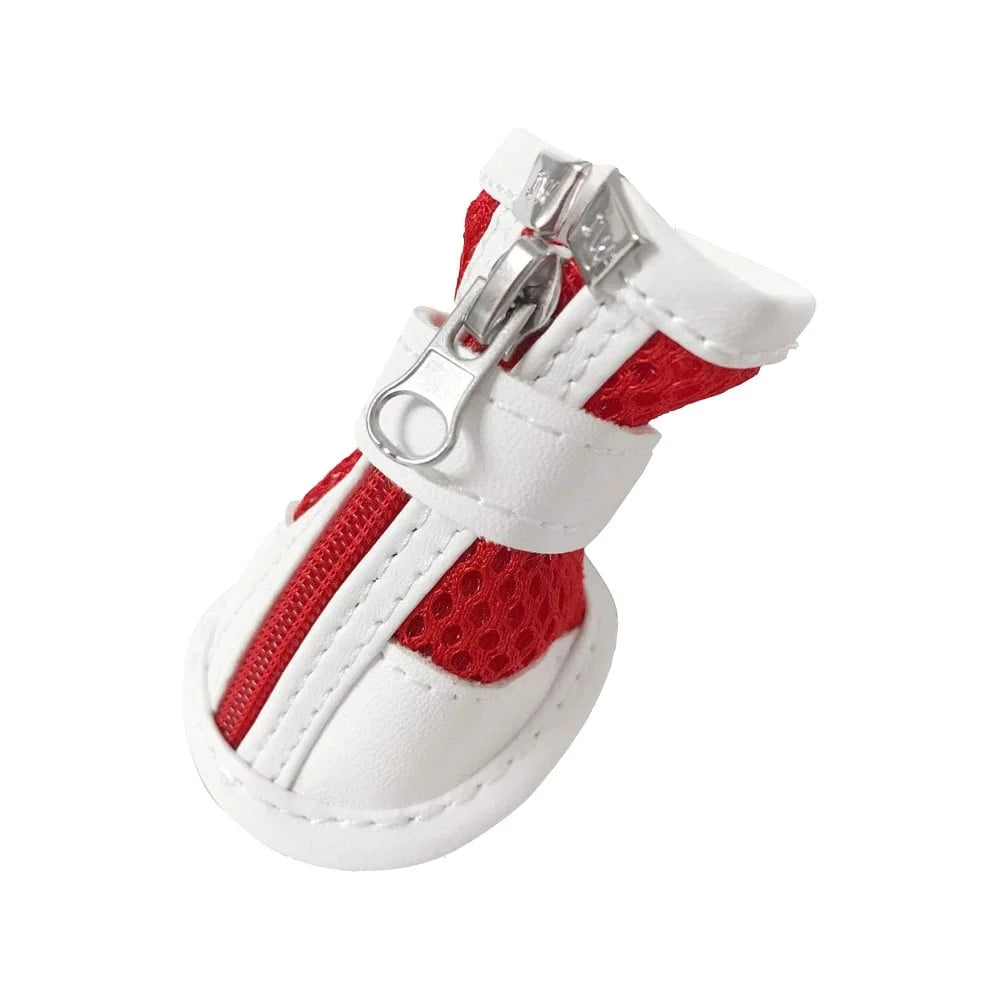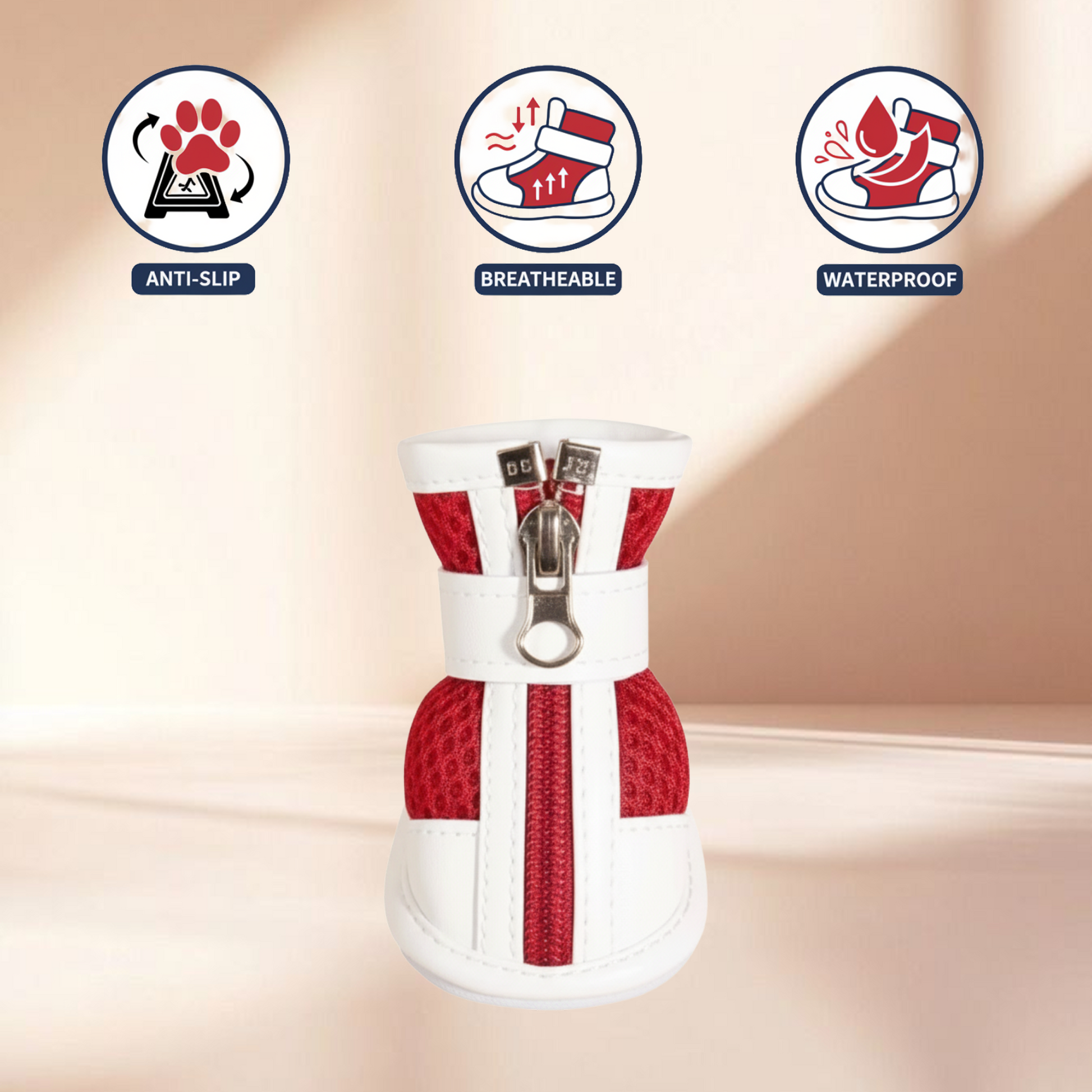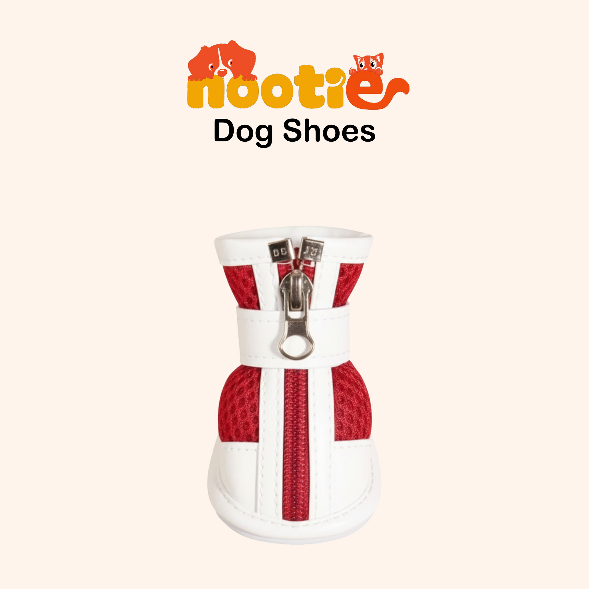 Nootie Dog Shoes – Red & White Stylish Paw Protector Boots with Zipper | Anti-Slip, Breathable, Waterproof Shoes for Small, Medium & Large Dogs