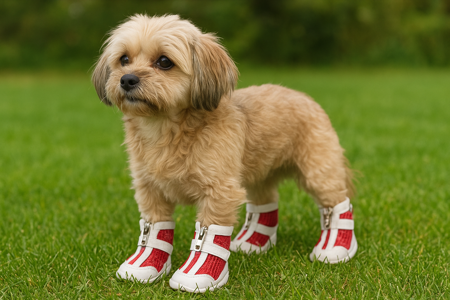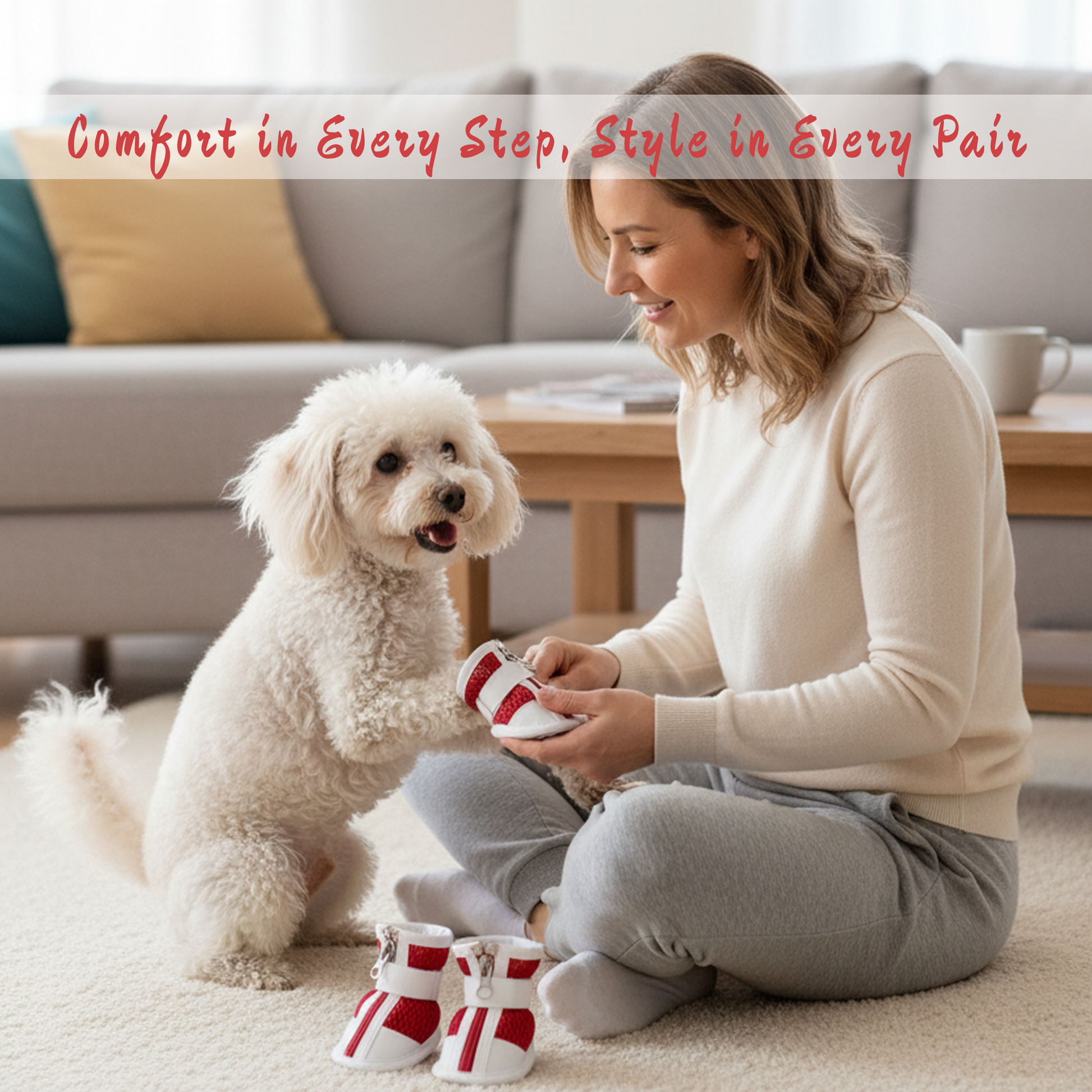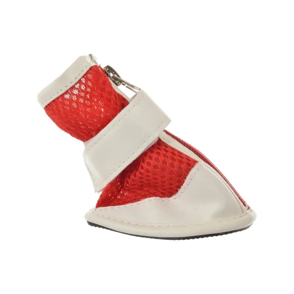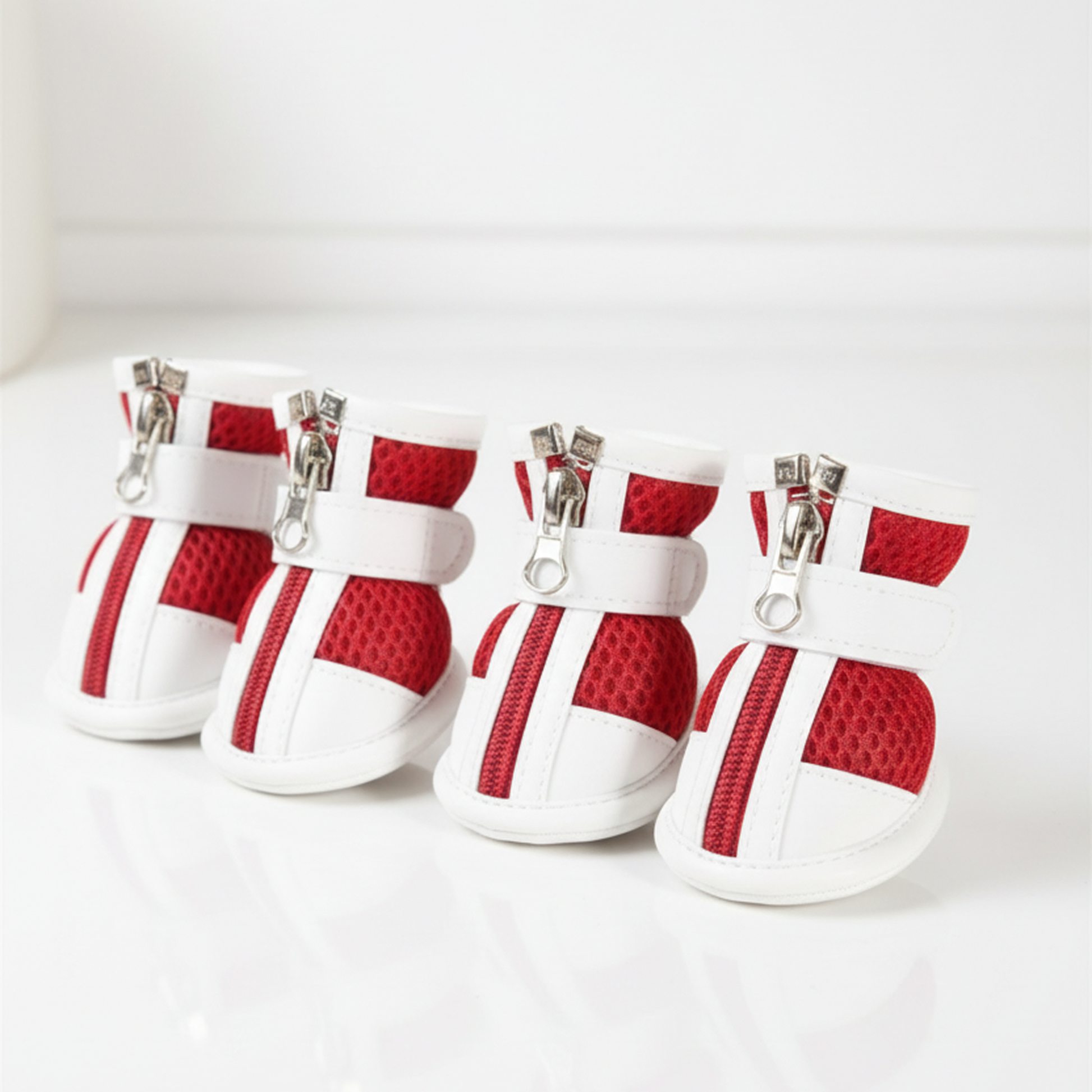 Nootie Dog Shoes – Red & White Stylish Paw Protector Boots with Zipper | Anti-Slip, Breathable, Waterproof Shoes for Small, Medium & Large Dogs