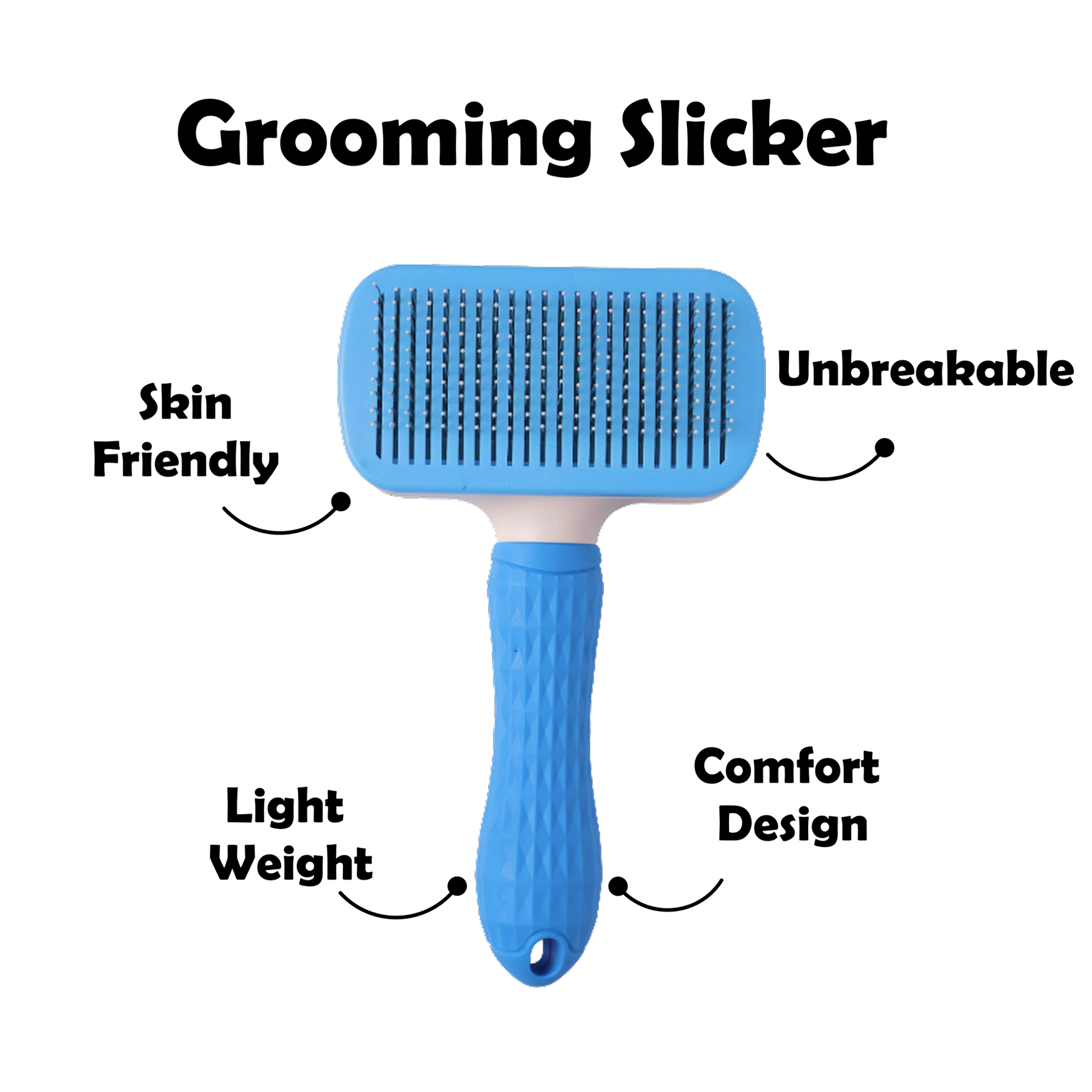 -Our Self Cleaning Slicker Brush grooms and massages for a healthy coat. It increases blood circulation and leaves your pet’s coat soft and shiny.