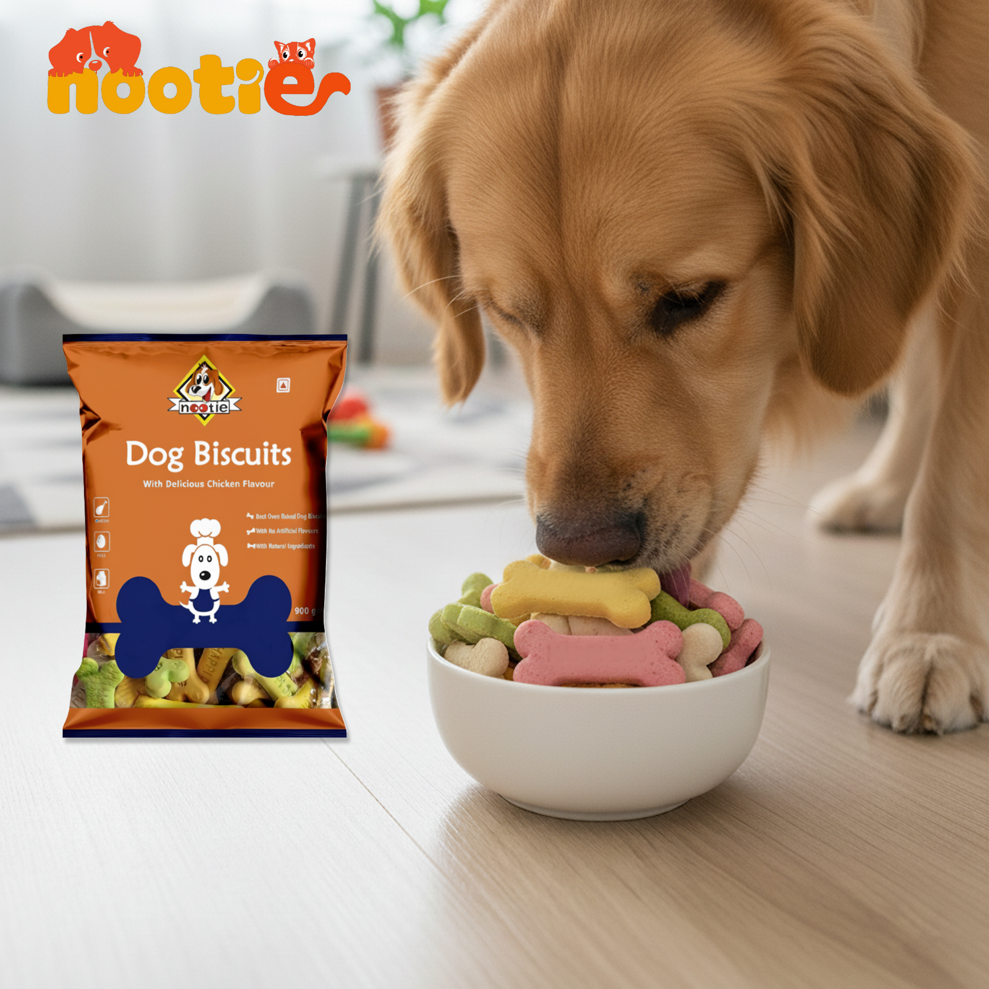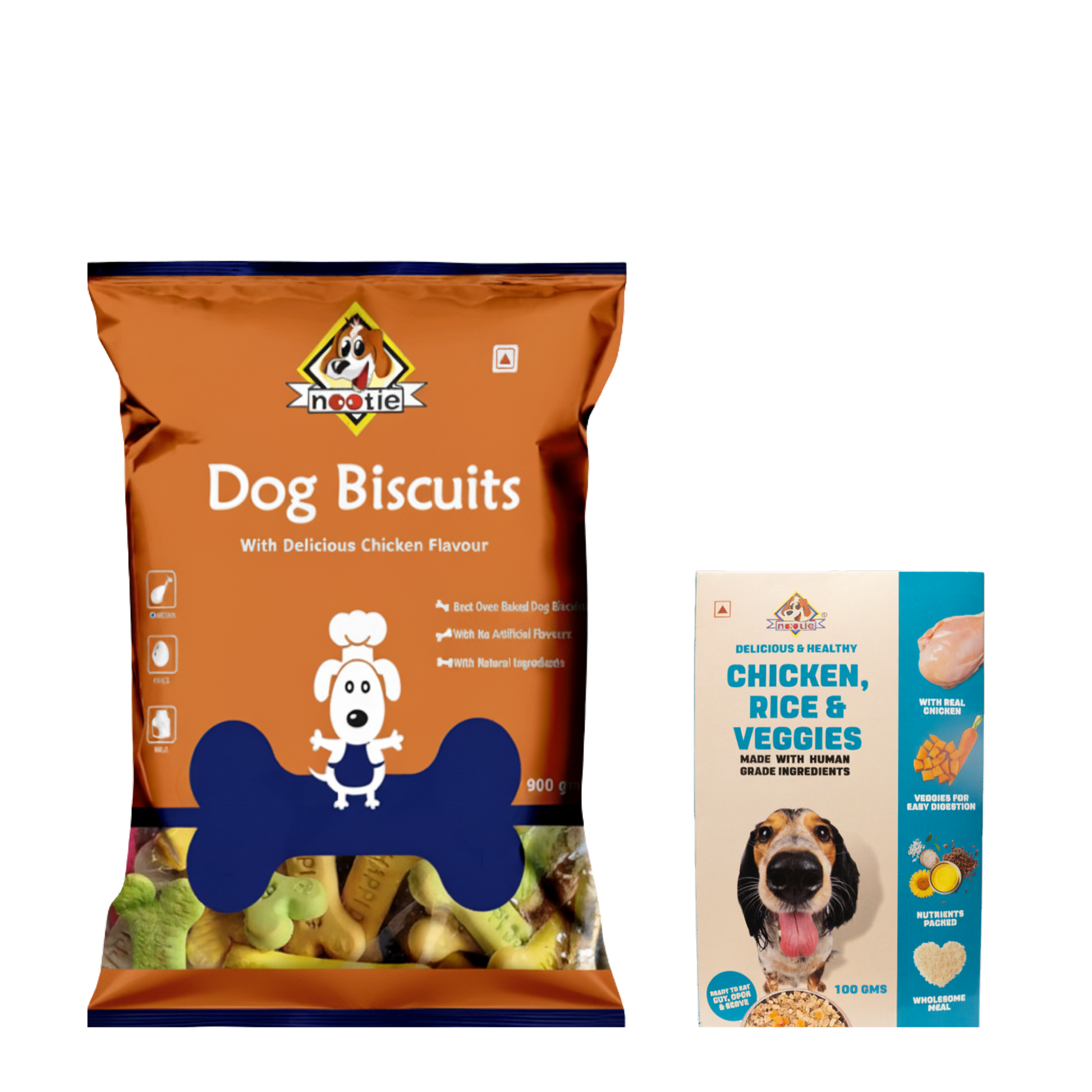 Nootie Chicken Biscuits with Assorted Flavour for Adult Dogs | Buy 1 Get 1 (900g Biscuits + 100g Chicken Pulao) | Protein-Rich, Highly Digestible, and Nutrient-Dense Dog Treats