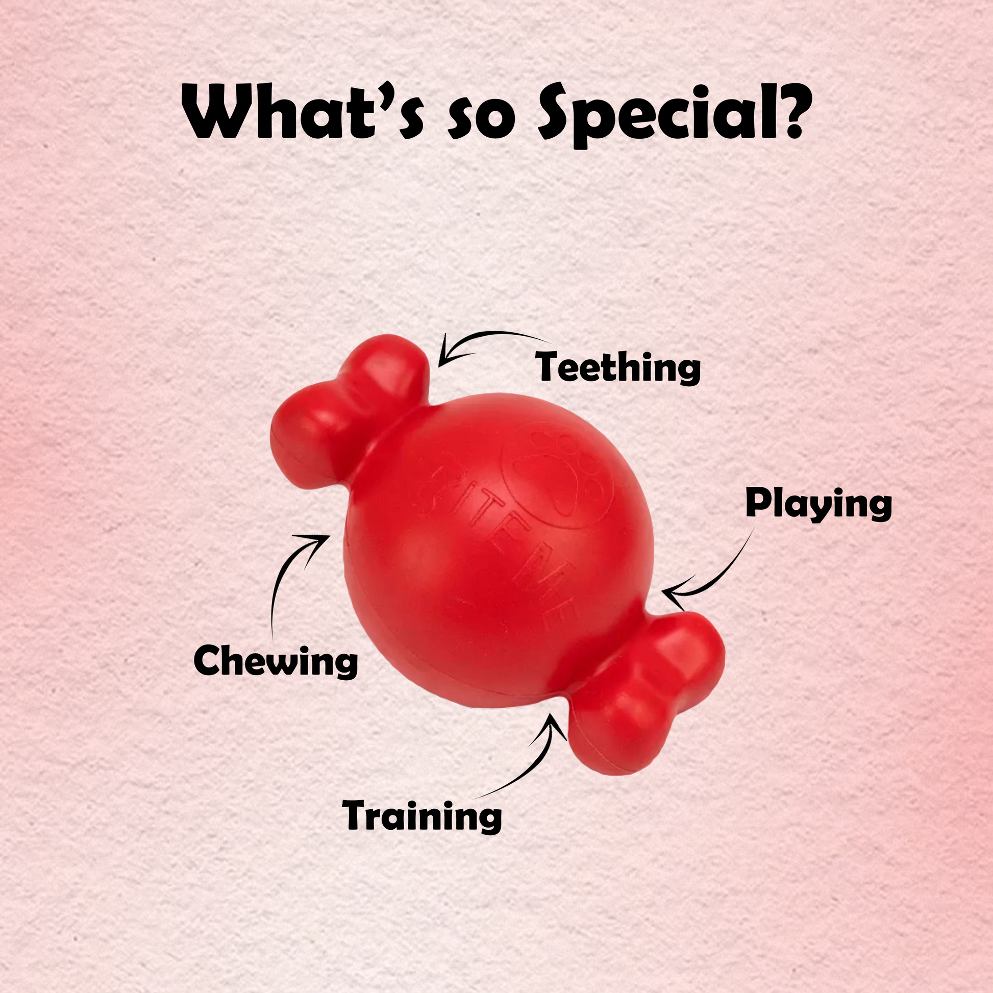Made from ultra-tough, pet-safe rubber, this toy is built for dogs who love to chew, gnaw, and play hard. Its compact and textured form not only keeps dogs engaged but also helps relieve teething discomfort and strengthens jaw muscles. Whether you're tossing it for a game of fetch or using it as a training reward, this durable toy is sure to become your dog’s favorite treat – minus the calories!
