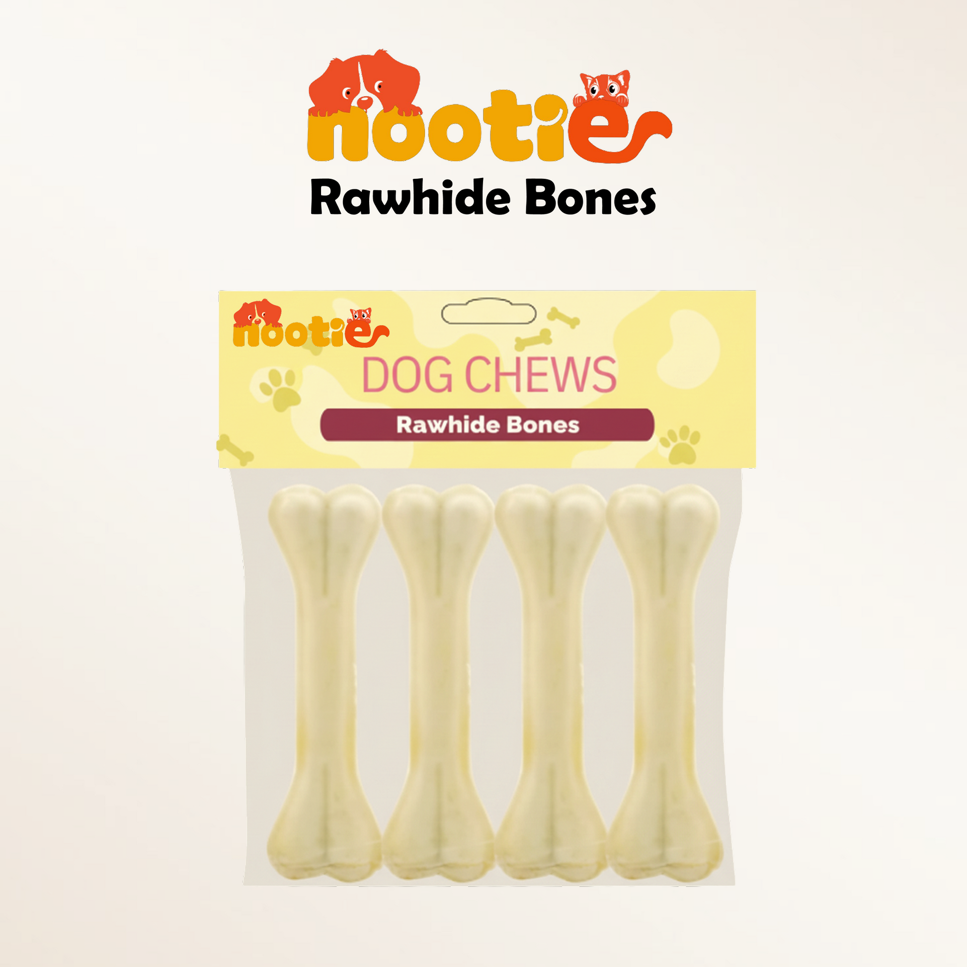 NOOTIE Rawhide Dog Chew Bones – Assorted Sizes (3" to 10") – Dental Care Treats