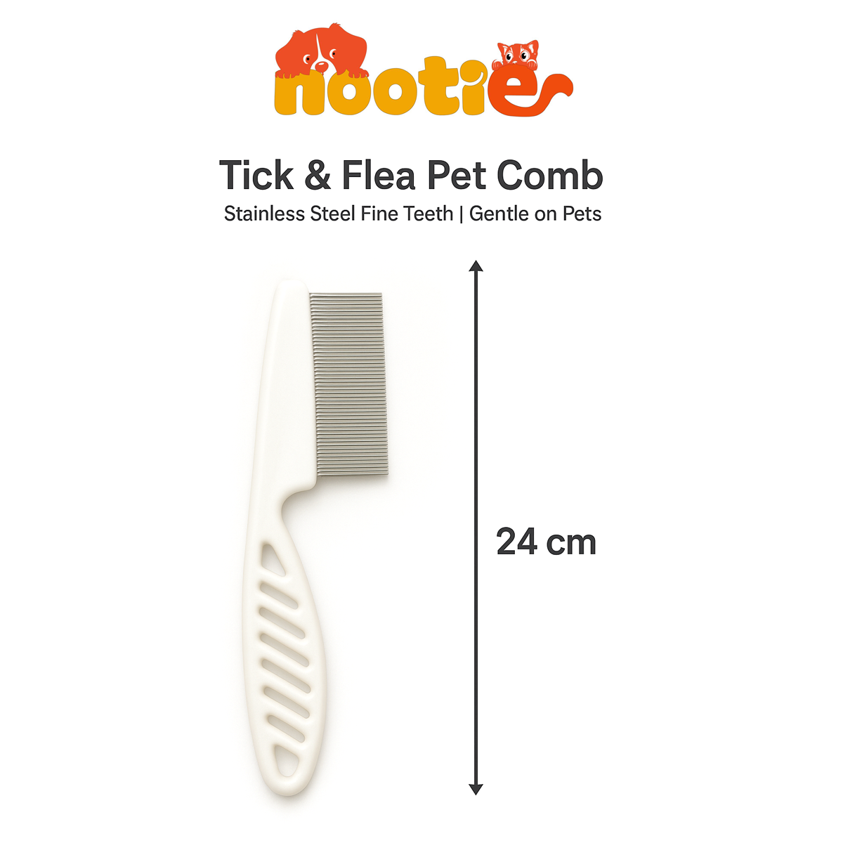 Nootie Tick & Flea Pet Comb for Dogs & Cats – Stainless Steel Fine Tooth Grooming Comb | Removes Fleas, Ticks, Dandruff & Loose Hair | Easy Grip Handle (White, 24 cm)
