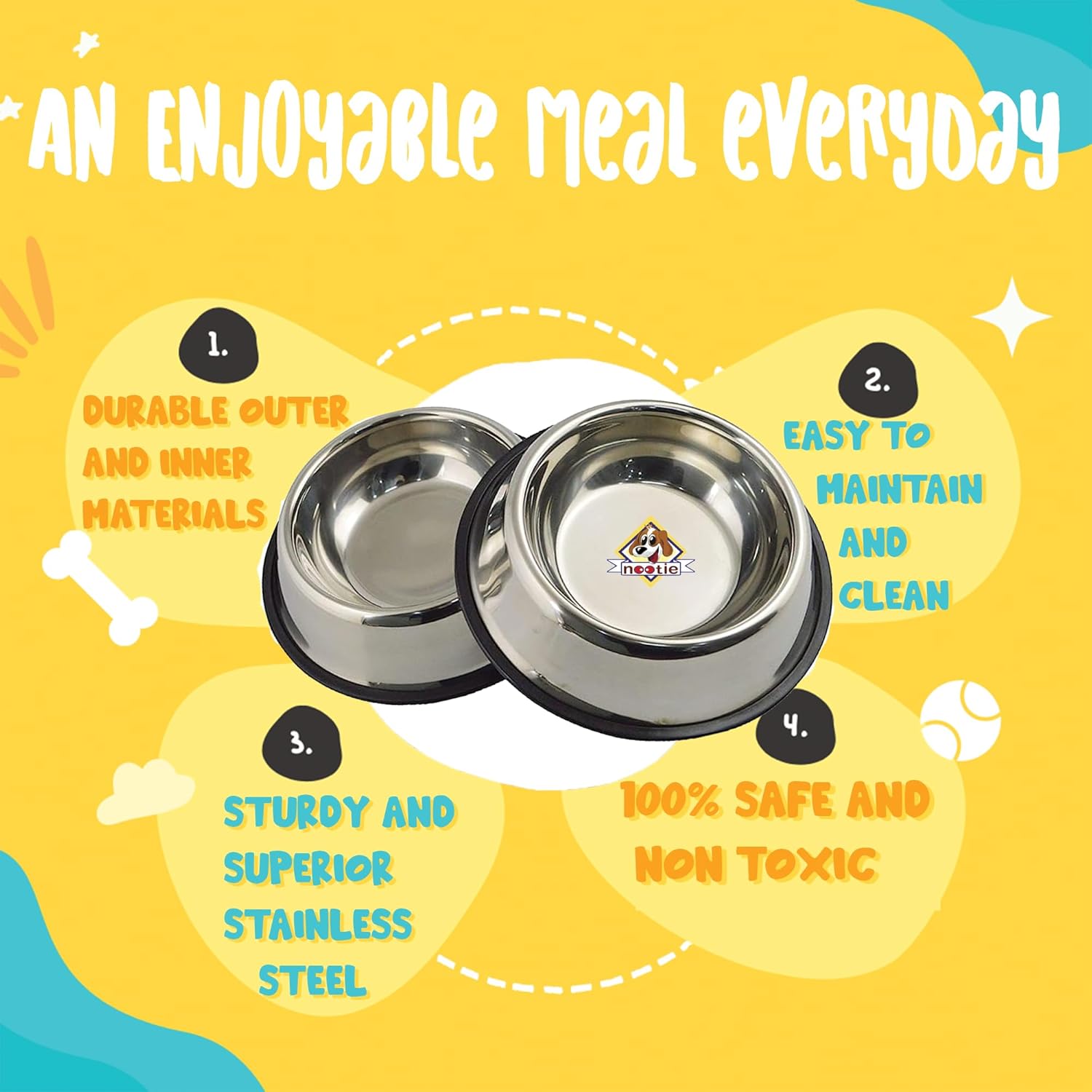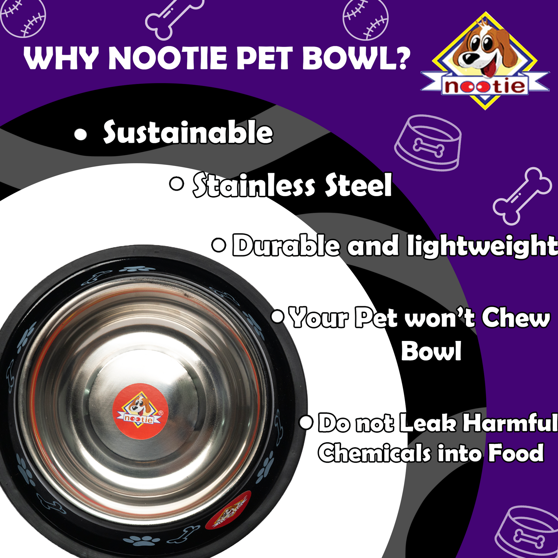 Nootie Steel Bowl with Rubber Rim, Size- Medium, 500ml, Pack of 2