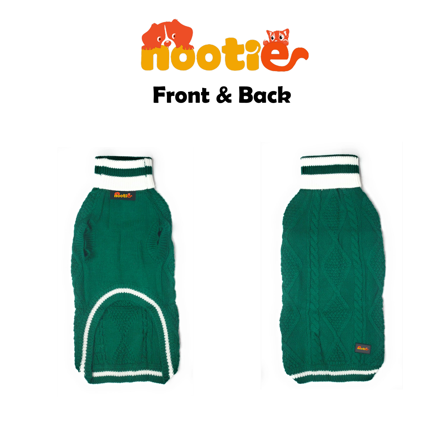 Nootie Dog High Neck Sweater, Green – Soft, Warm & Lightweight Comfort. Made from premium, ultra-soft knit material, this sweater offers gentle warmth and a breathable fit. The ribbed high neck and hem provide a secure yet flexible hold, making dressing your pet easy and hassle-free. With its timeless red cable-knit pattern and white stripe accents, it’s a must-have for your dog’s winter wardrobe.