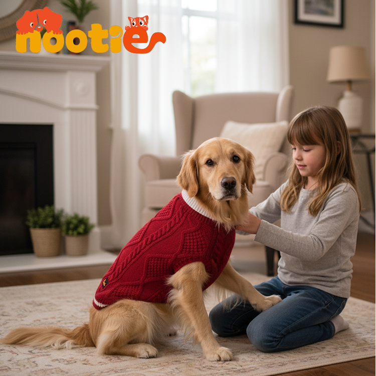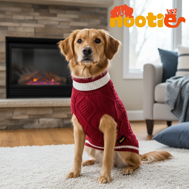 Nootie Dog High Neck Sweater, Red – Soft, Warm & Lightweight Comfort. Made from premium, ultra-soft knit material, this sweater offers gentle warmth and a breathable fit. The ribbed high neck and hem provide a secure yet flexible hold, making dressing your pet easy and hassle-free. With its timeless red cable-knit pattern and white stripe accents, it’s a must-have for your dog’s winter wardrobe.
