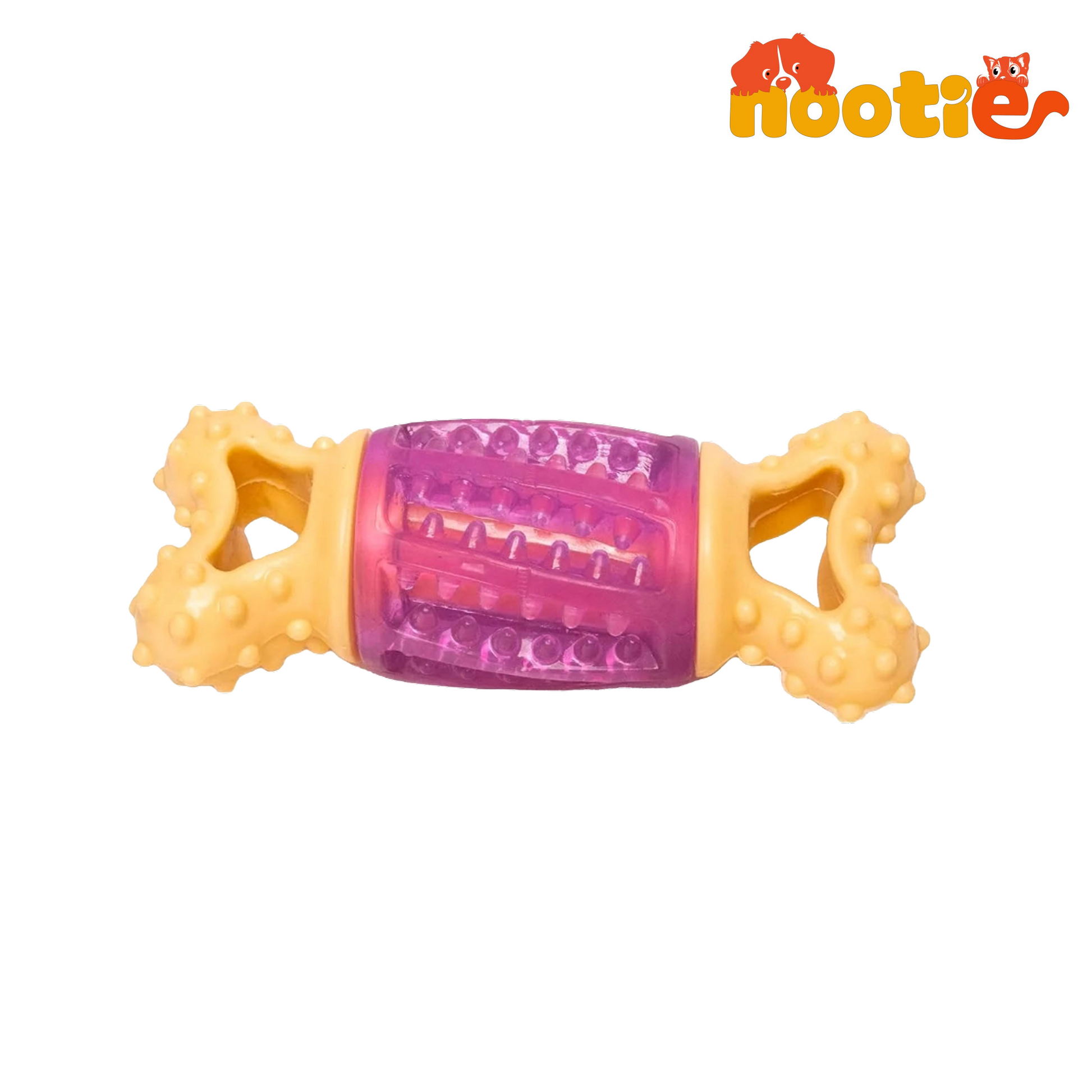 Nootie Dog Toothbrush Toy, Dog Teeth Cleaning Dental Care Natural Rubber Toy-Yellow & Purple