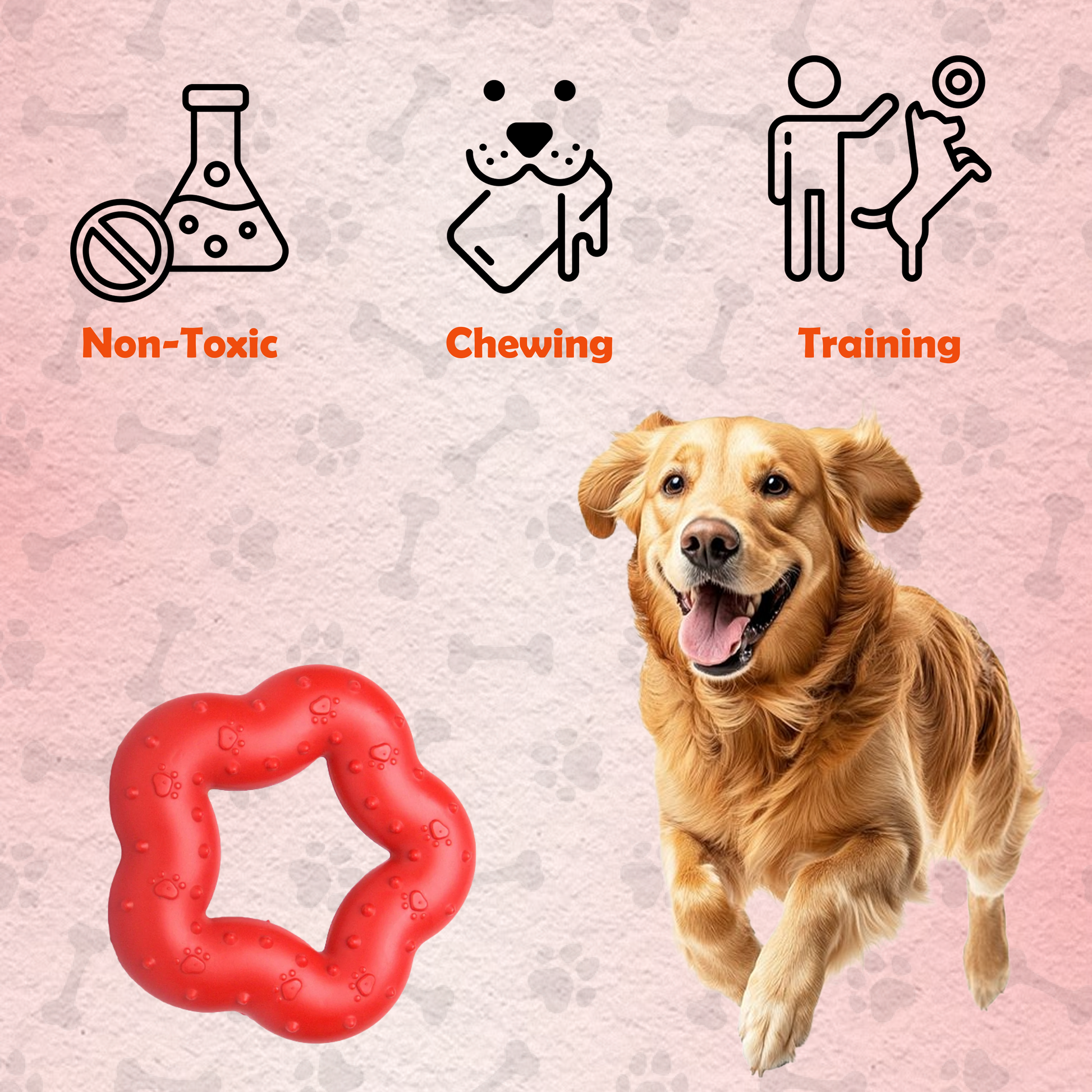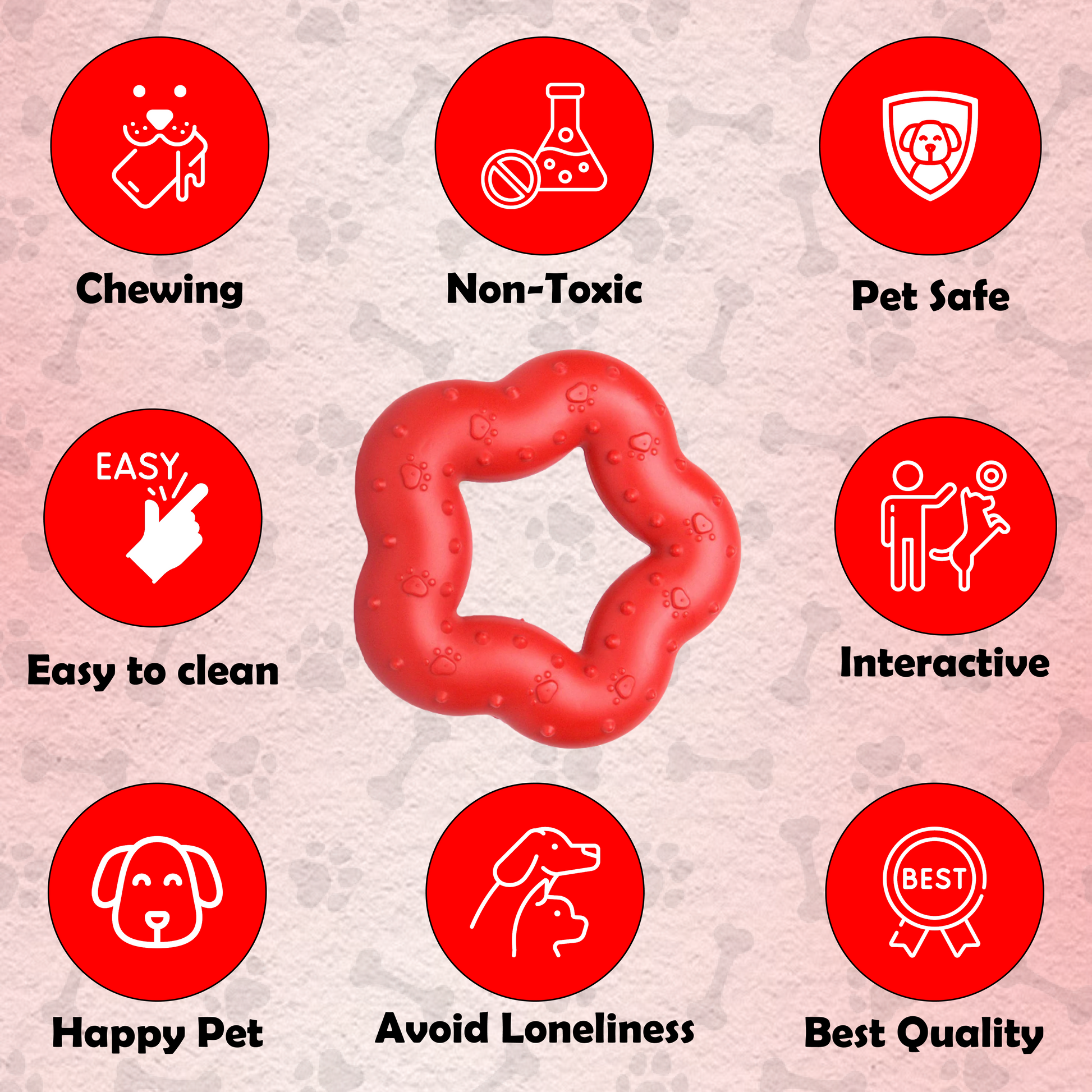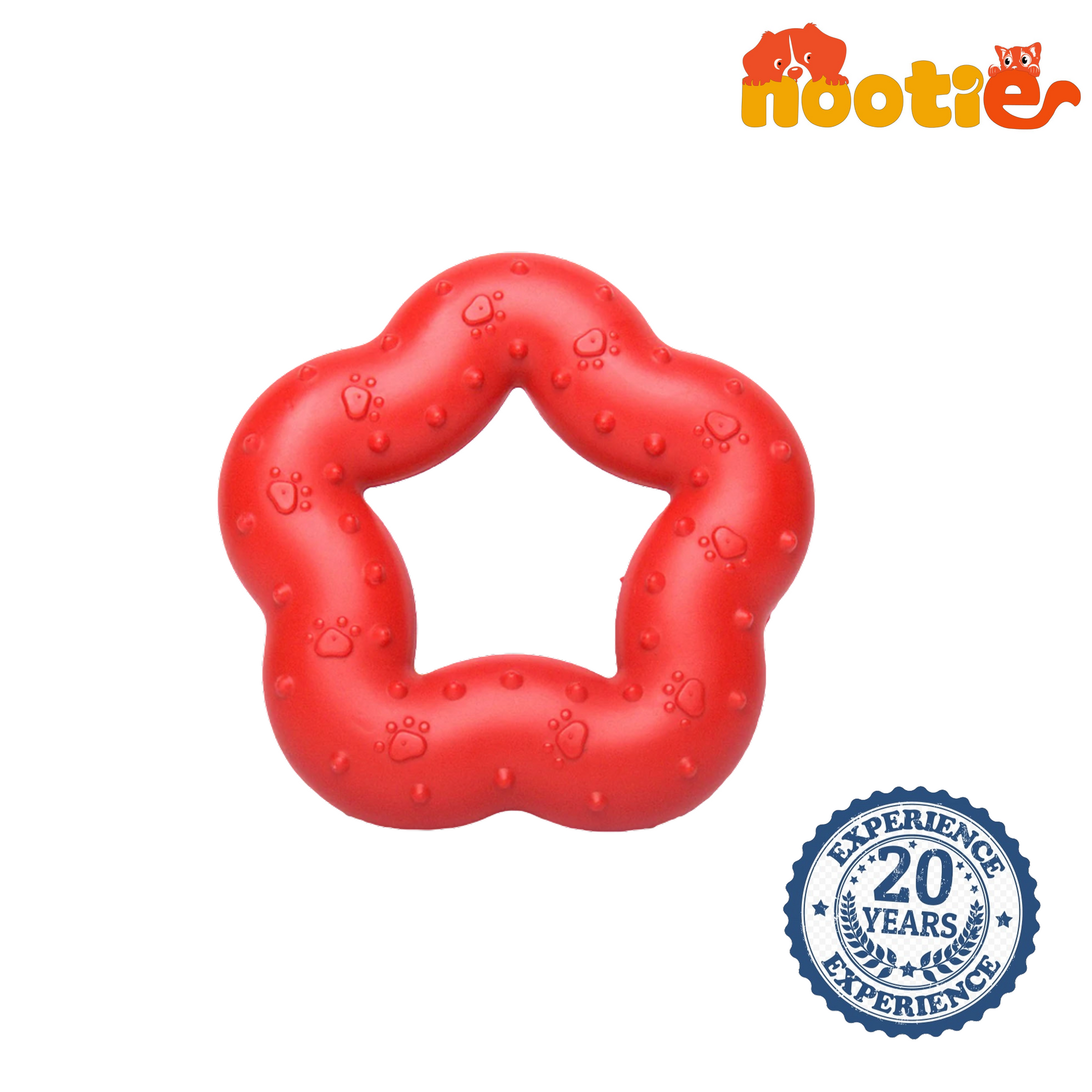Nootie Hard Rubber Toy for Dog Durable, Non-Toxic Chew Toy for Dogs, Great for Playing, Teething, Chewing & Training, Red (Star Ring, Large)