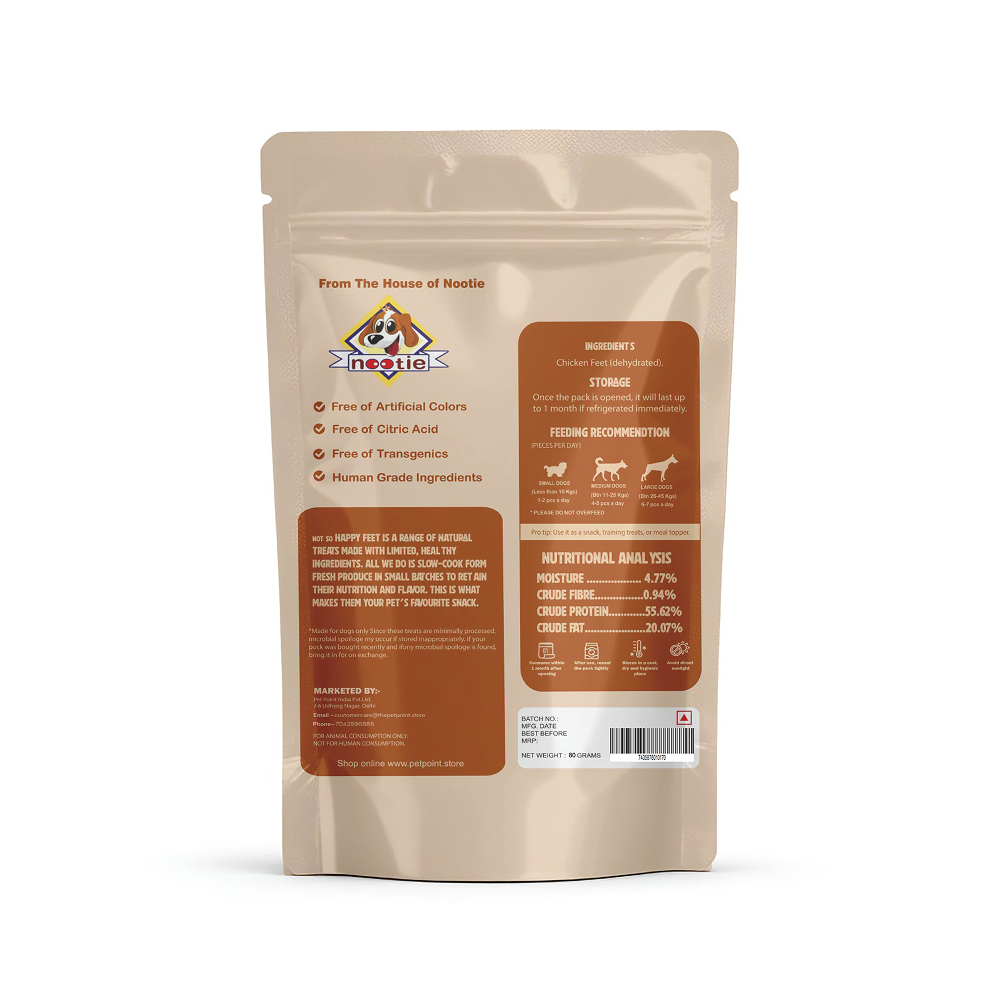 Nootie Happy Chews – Dehydrated Chicken Feet Dog Treats – All-Natural, Farm Fresh and Grain Free, Single-Ingredient Protein-Rich Snack for Dogs – 80g