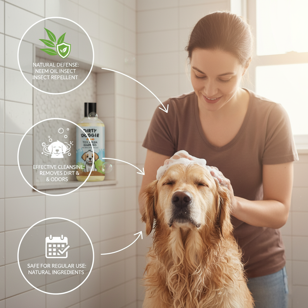 I used the Nootie Dirty Doggie Neem Shampoo on my Labrador — the neem oil really helps soothe his itchy skin and the coat feels much cleaner.