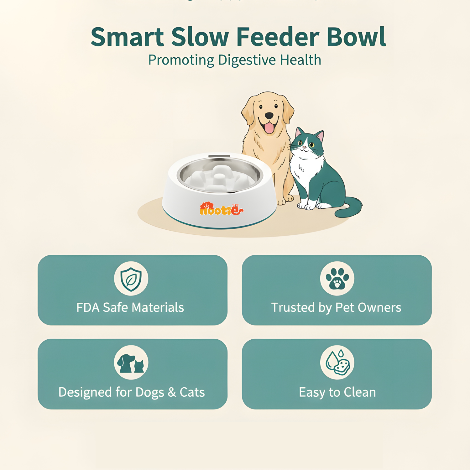 The Nootie 2-in-1 Smart Weighing Bowl is crafted to make your pet’s mealtime healthier, safer, and scientifically accurate. Its built-in digital scale allows precise portion measurement, helping prevent overeating and obesity. The ABS slow-feeder maze ensures pets eat at a safe pace, reducing the risk of bloating, indigestion, choking, and vomiting. The bowl is designed with a 5-degree ergonomic tilt, improving comfort and reducing neck strain—especially beneficial for senior pets, flat-faced breeds, and growing puppies/kittens. The SUS304 food-grade stainless steel inner bowl prevents bacterial growth and supports long-term hygiene. A silicone anti-slip base improves stability, ensuring spill-free mealtimes. With large capacity and easy-clean design, this bowl is perfect for daily feeding and long-term health improvement. Product Highlights ✅ Built-in digital scale helps you measure exact meal portions—perfect for weight management, vet-prescribed diets, and multi-pet homes. ✅ ABS slow-feeder design with ridges and valleys reduces gulping, preventing bloating, indigestion, and vomiting. ✅ The ergonomic 5° tilt makes eating more comfortable for pets and supports long-term joint health. ✅ SUS 304 food-grade inner bowl prevents bacterial build-up and keeps meals fresh and safe. ✅ Silicone anti-slip pads provide grip, preventing the bowl from sliding during mealtime. ✅ Spacious design fits generous portions of kibble, wet food, cooked meals, or treats. ✅ Detachable components can be washed separately, making daily cleaning effortless. ✅ High-grade ABS material ensures durability and repeated usage across all breed sizes.