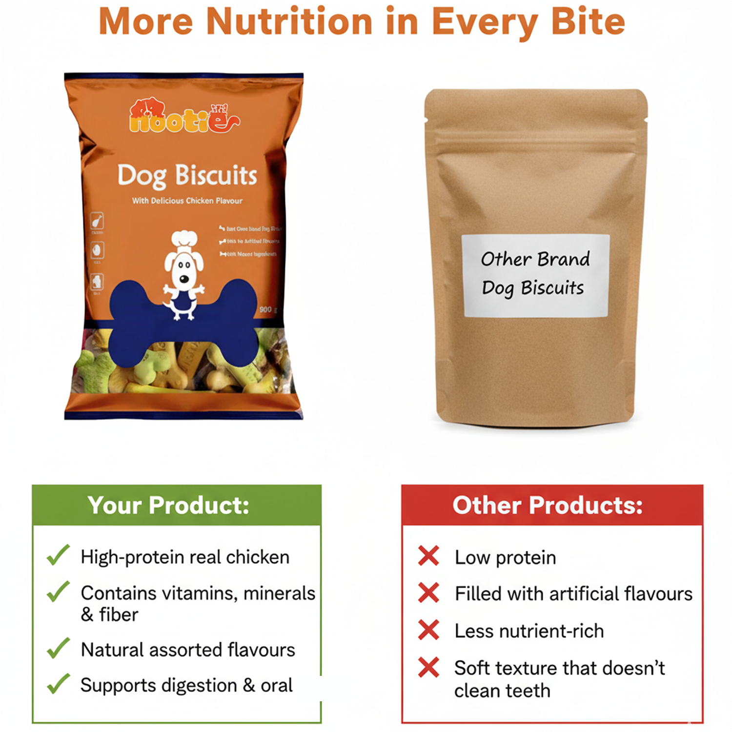 Nootie Chicken Biscuits for Adult Dogs – Assorted Flavours (900 g) | High-Protein, Crunchy & Nutrient-Rich Treats