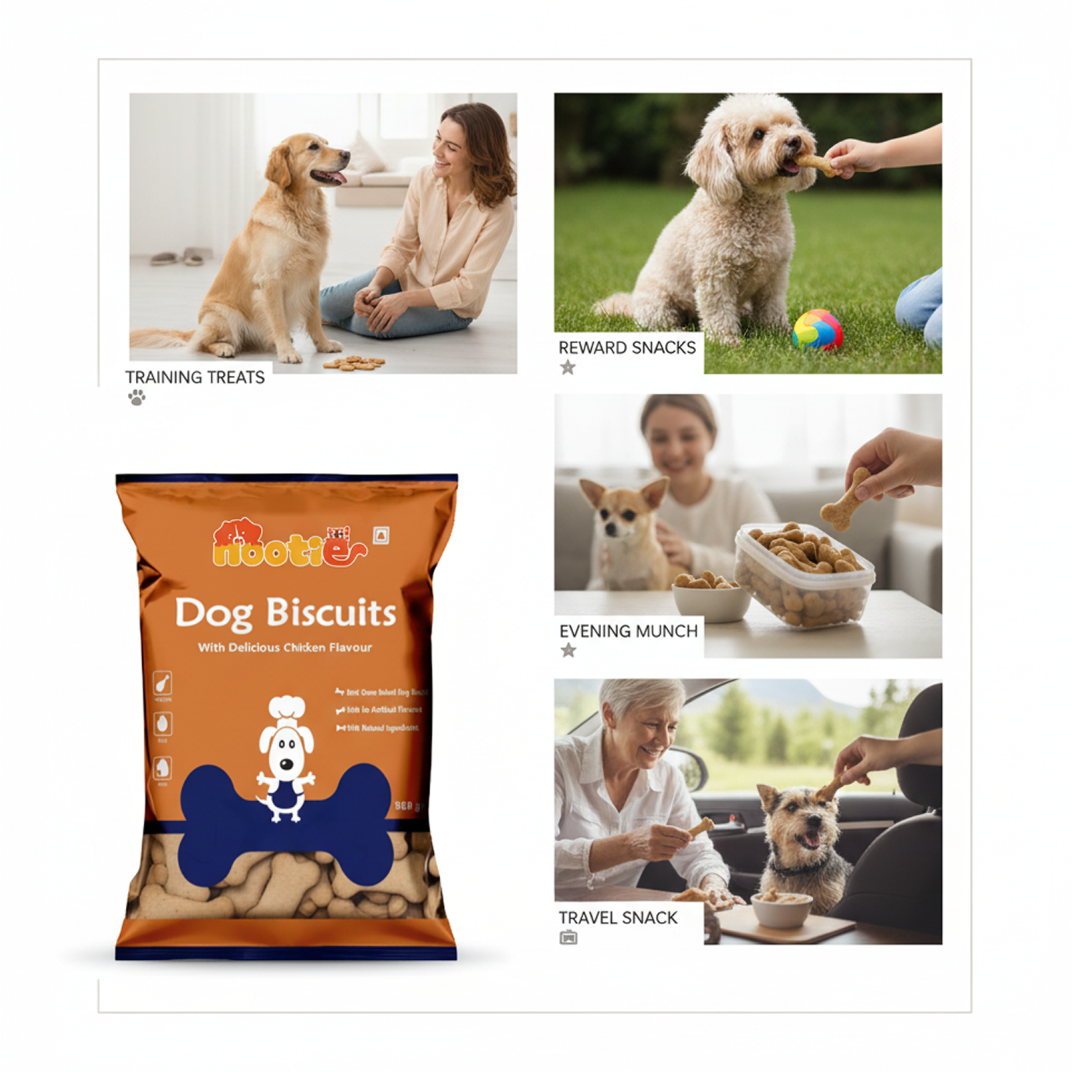 Nootie treats are made with real, human-grade ingredients like chicken, peanut butter, fruits, and natural herbs — with no artificial flavors, colors, or preservatives.