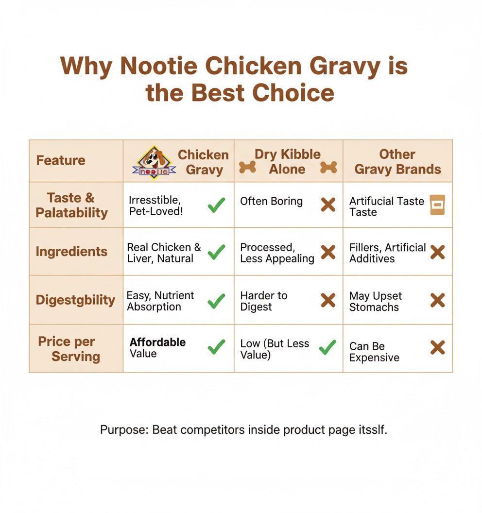 -Enhances the Flavor of Any Meal: Add Nootie Chicken and Liver Gravy to your dog’s dry food, wet food, or homemade meals to enhance the flavor and make mealtime more enjoyable