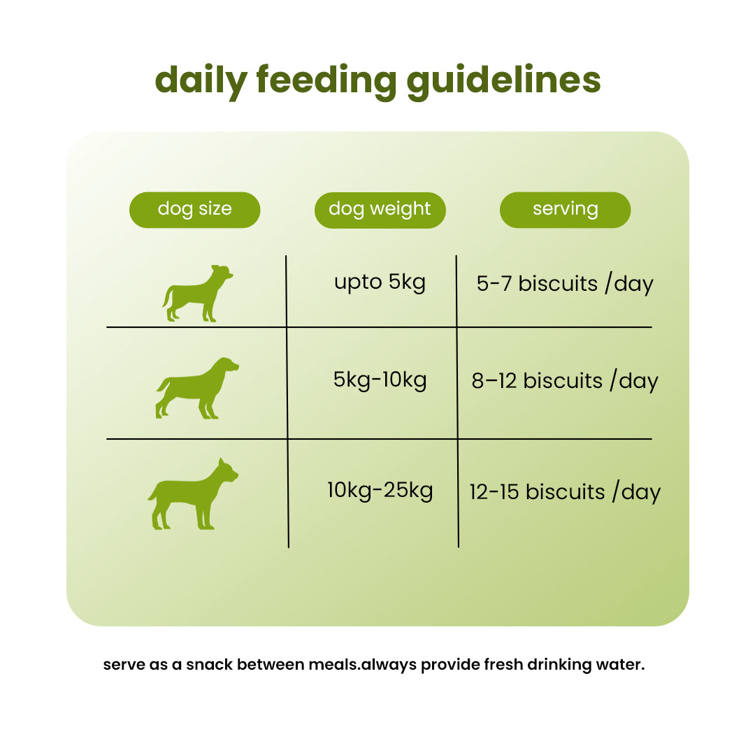 10 – 25 kg | 12–15 biscuits/day |