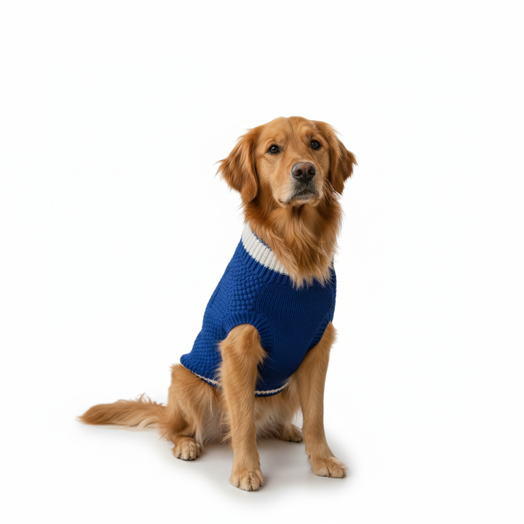 Nootie Dog High Neck Sweater, Blue – Soft, Warm & Lightweight Comfort. Made from premium, ultra-soft knit material, this sweater offers gentle warmth and a breathable fit. The ribbed high neck and hem provide a secure yet flexible hold, making dressing your pet easy and hassle-free. With its timeless red cable-knit pattern and white stripe accents, it’s a must-have for your dog’s winter wardrobe.