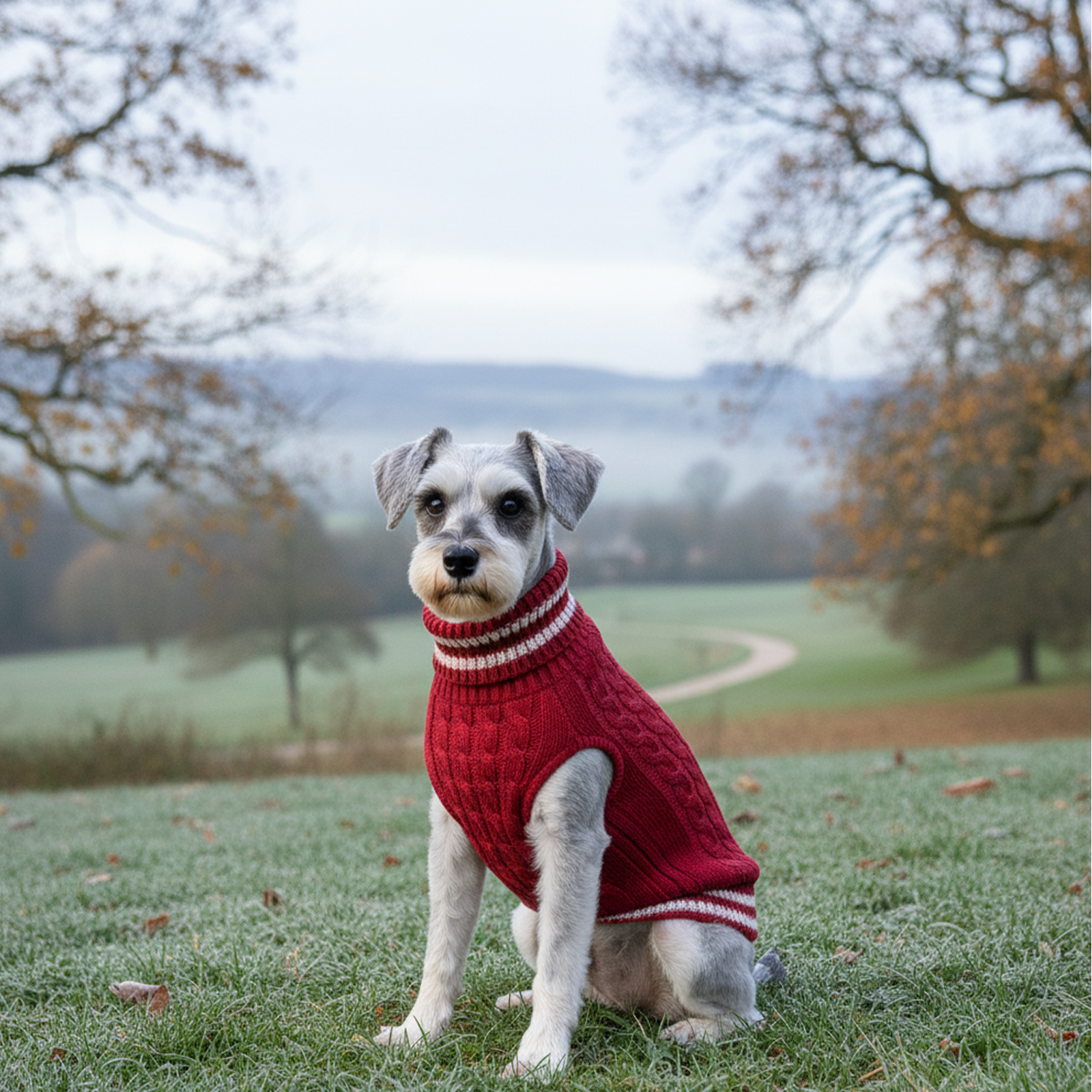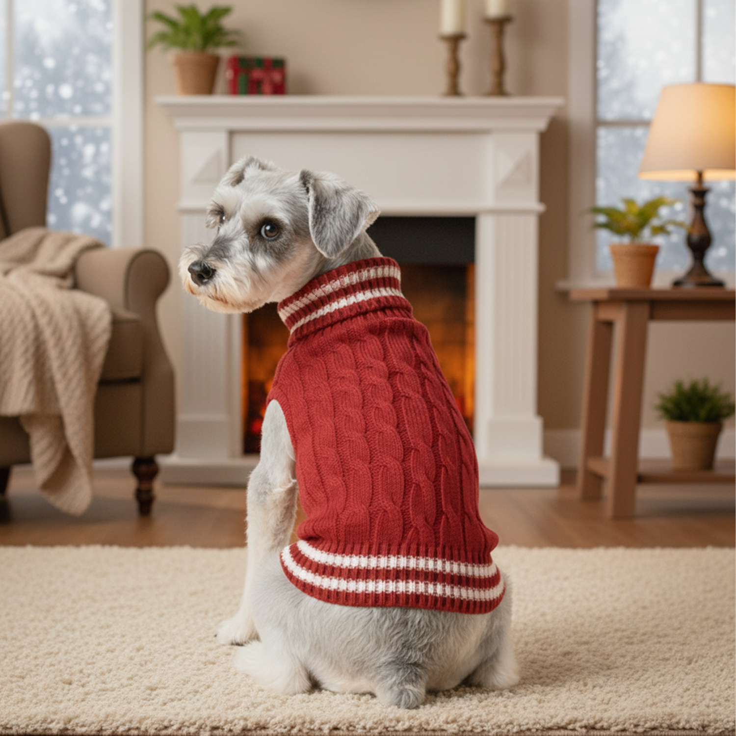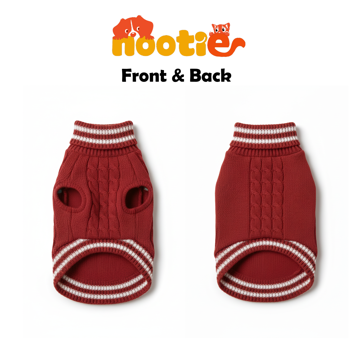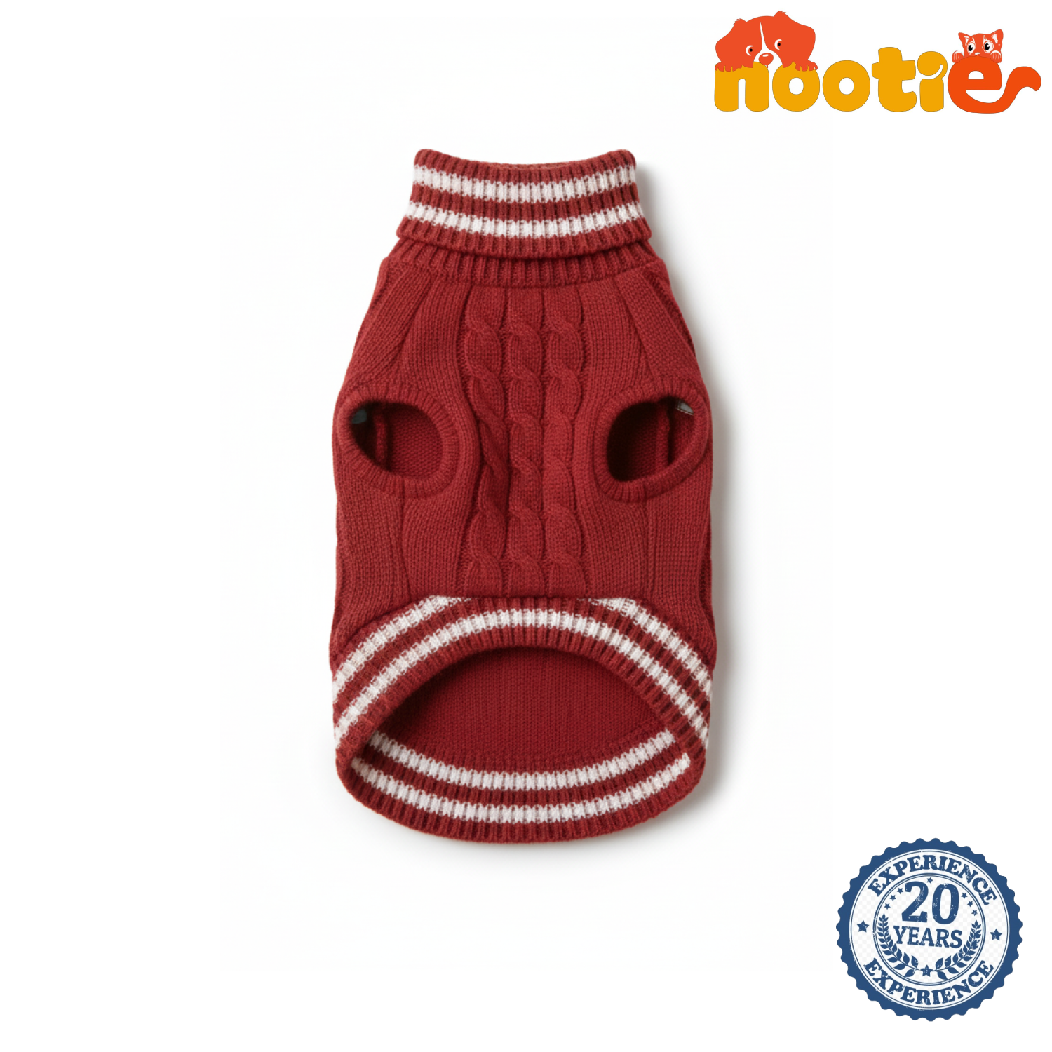 Nootie Dog High Neck Sweater, Red – Soft, Warm & Lightweight Comfort. Made from premium, ultra-soft knit material, this sweater offers gentle warmth and a breathable fit. The ribbed high neck and hem provide a secure yet flexible hold, making dressing your pet easy and hassle-free. With its timeless red cable-knit pattern and white stripe accents, it’s a must-have for your dog’s winter wardrobe.
