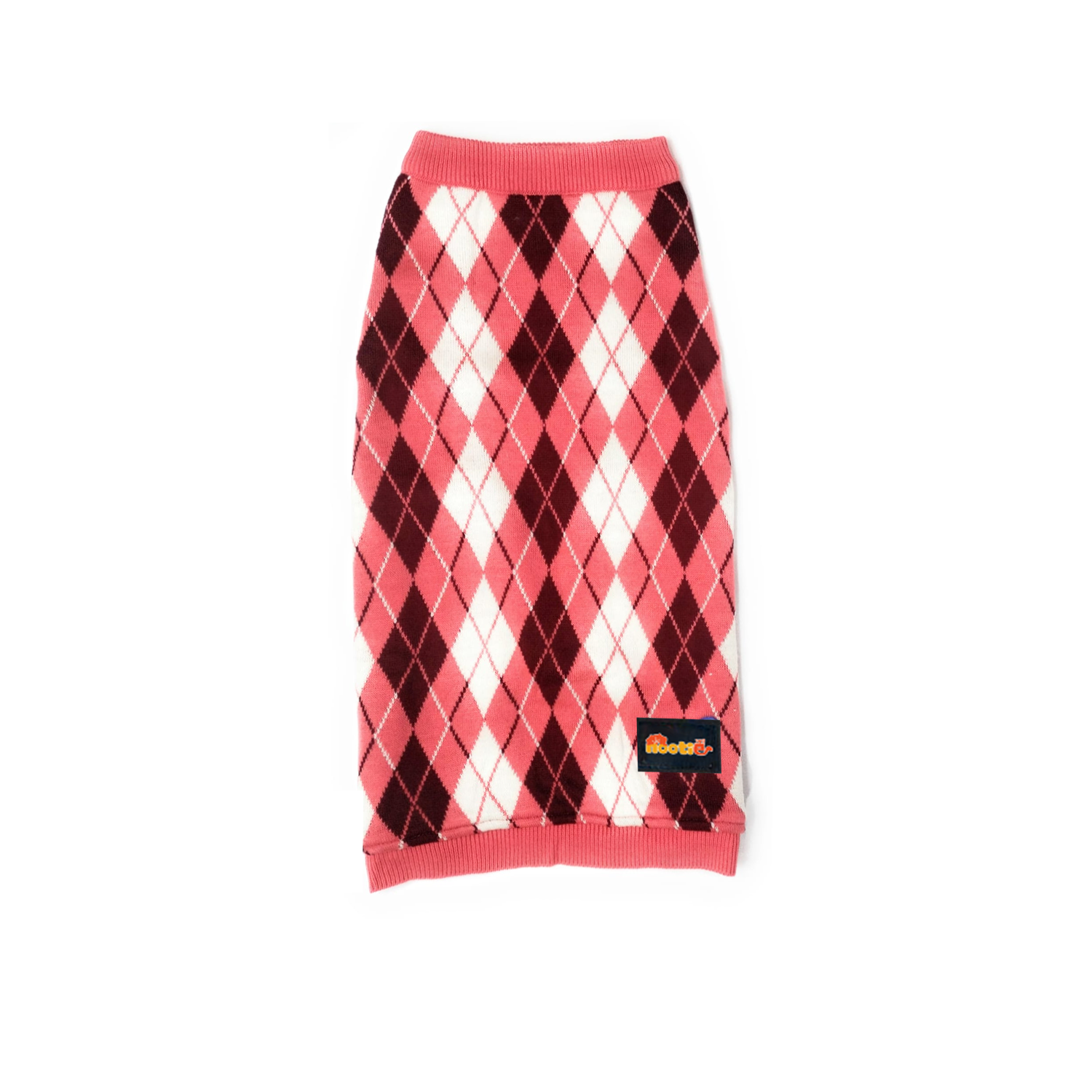 Nootie Dog Sweater, Pink Check – Stylish Winter Knitwear for All Breeds