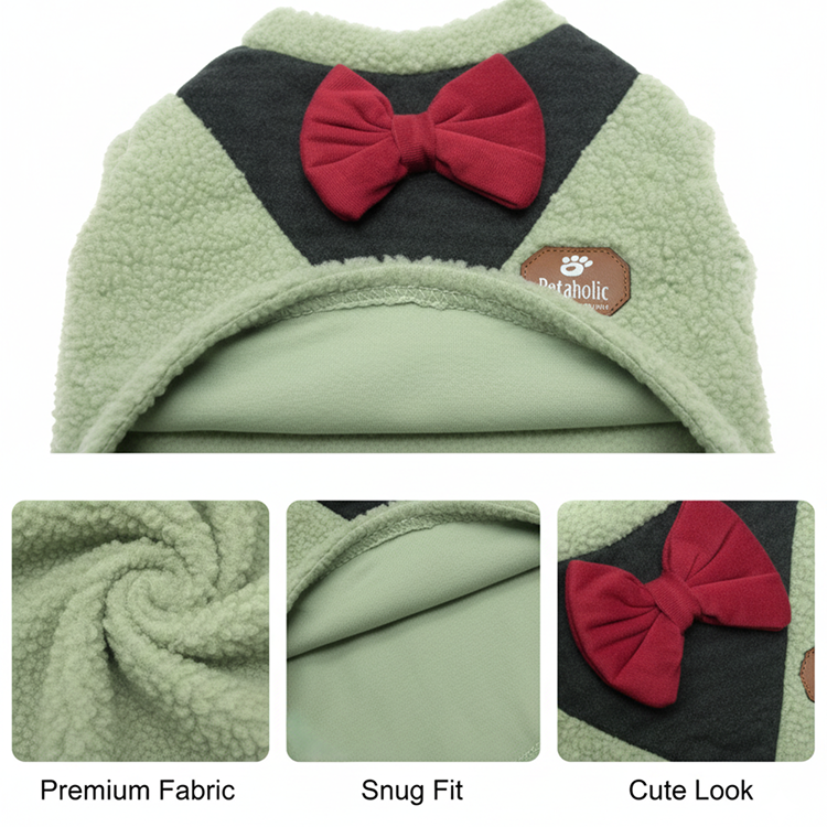 Nootie Dog Sweatshirt with Bow | Double-Layer, Warm, Soft Fleece Fur | Green