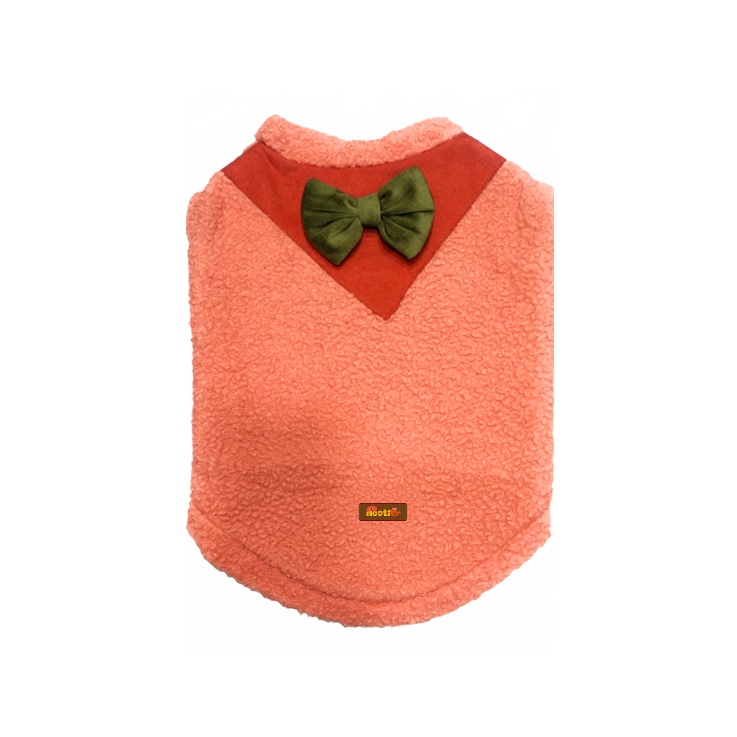 Nootie Dog Sweatshirt with Bow | Double-Layer, Warm, Soft Fleece Fur | Orange