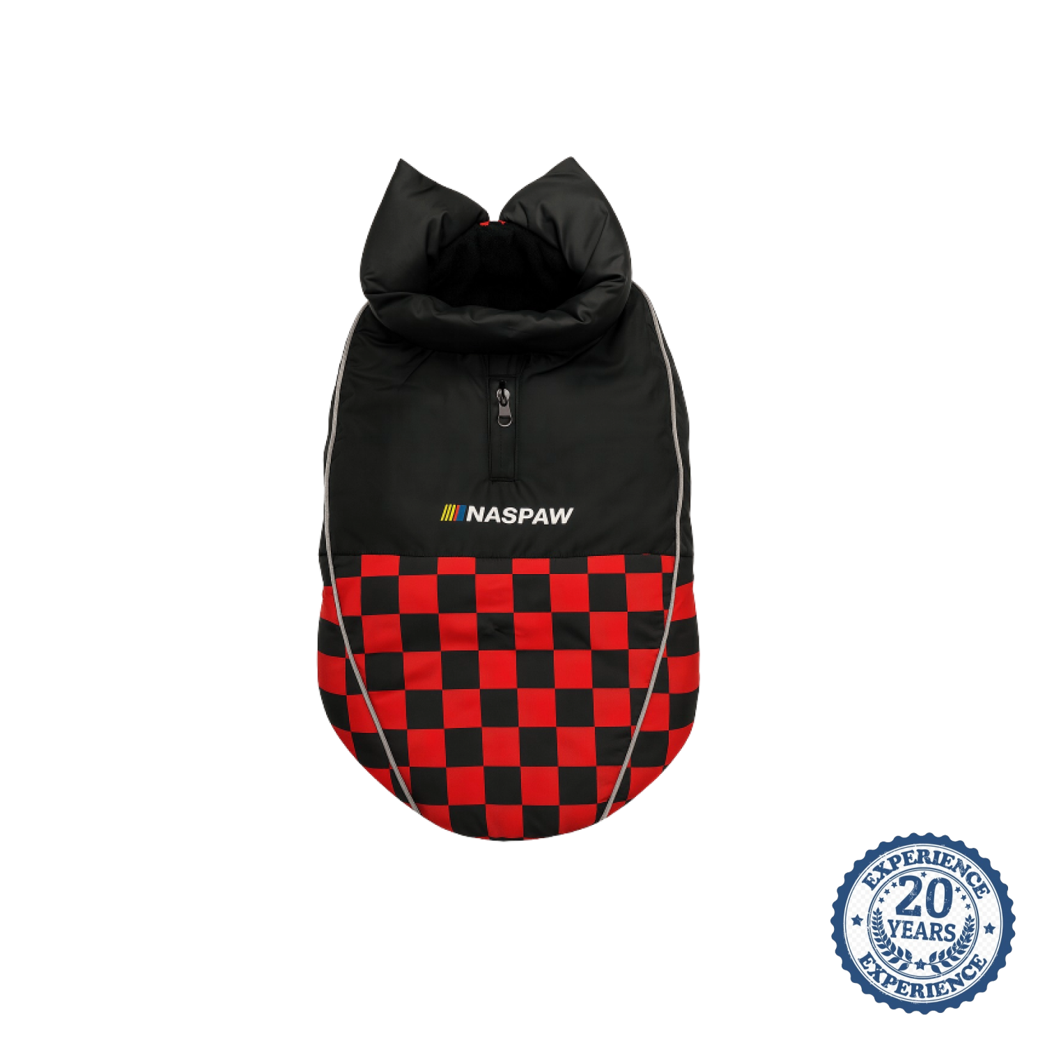 Nootie Dog Winter Jacket – High Neck, Warm & Waterproof Coat for Dogs, Red-Black
