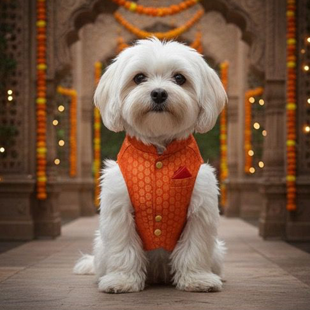 The Nootie Festive Sherwani is crafted to make your pet look royal and radiant in every celebration. Designed with premium-quality lightweight fabric, this sherwani combines comfort, breathability, and traditional elegance.