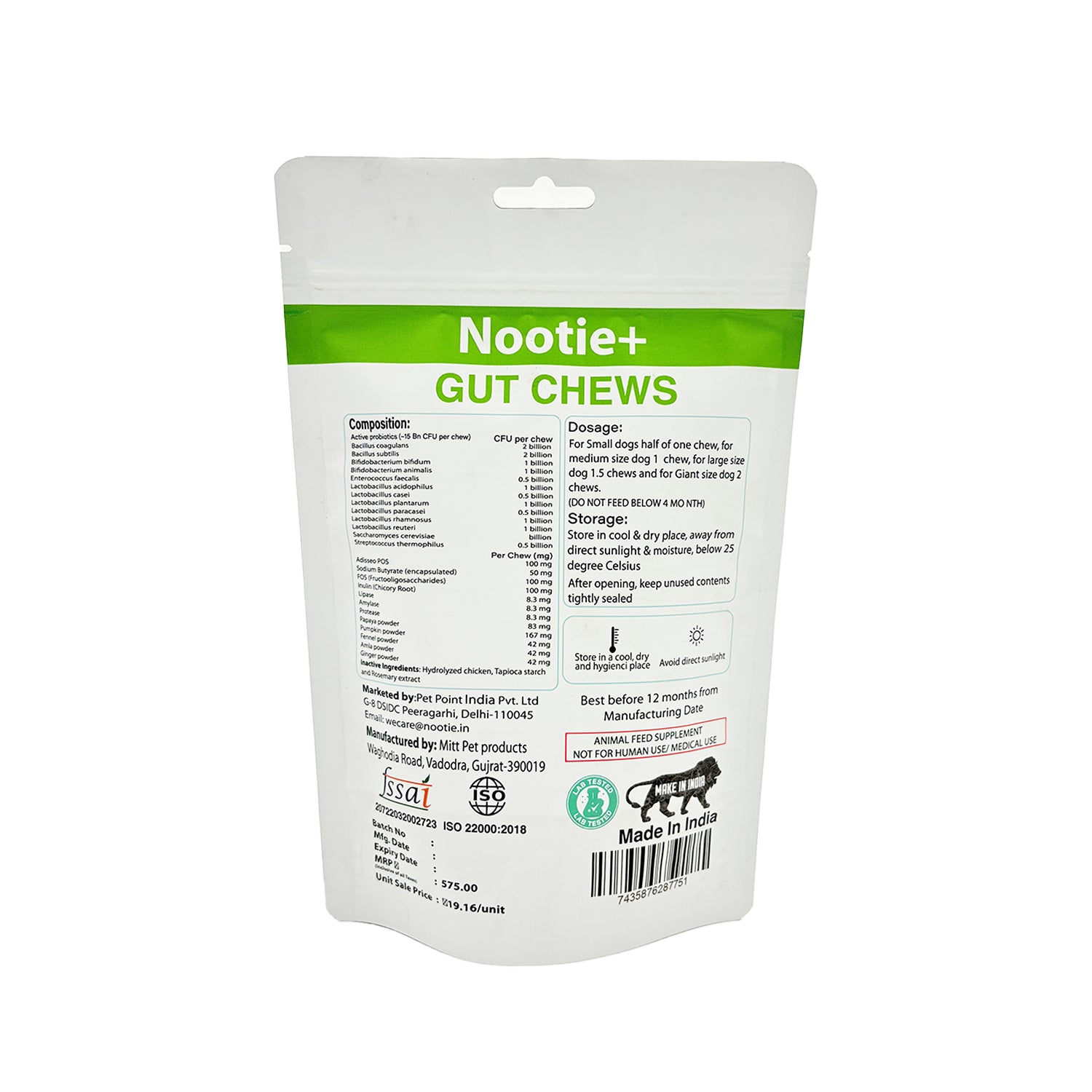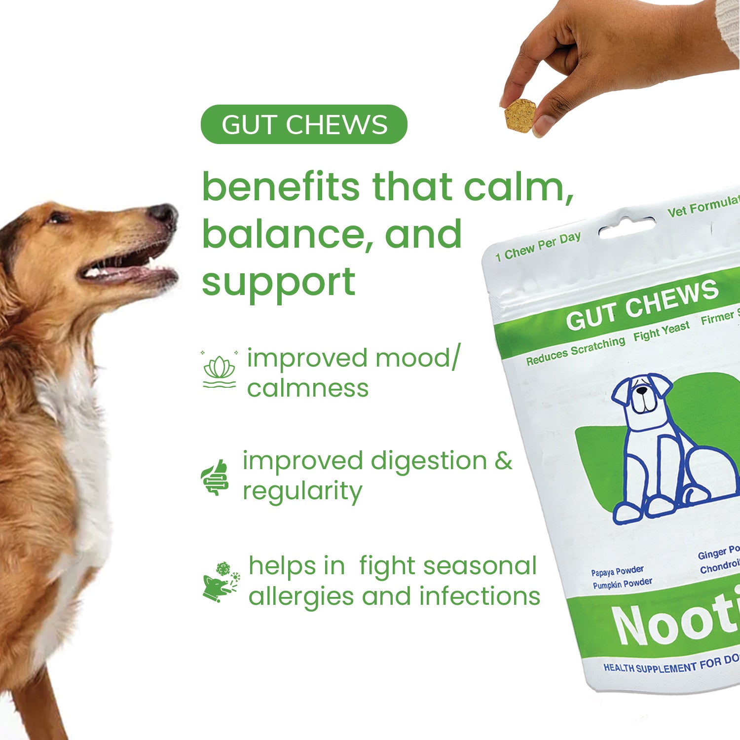 Nootie+ Gut Chews for Dogs | Digestive Support, Firmer Stools & Yeast Balance (30 Chews)