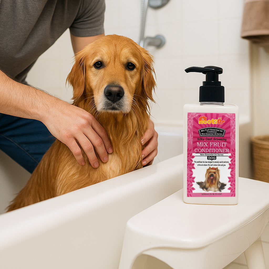 Nootie Mix Fruit Conditioner is a nourishing post-bath essential formulated to restore softness and shine to your pet’s coat. Infused with natural fruit extracts of papaya, apple, and coconut, it replenishes lost moisture, smoothens tangles, and enhances manageability. The conditioner’s unique blend of essential oils, fruit enzymes, and vitamins penetrates deeply to hydrate and protect both skin and fur — leaving it silky, glossy, and easy to brush. Its lightweight, residue-free formula ensures no heaviness or greasiness, while the refreshing fruity fragrance keeps your pet smelling fresh for days. Ideal for all coat types and gentle enough for regular use after any Nootie shampoo.Product Highlights ✅ Deeply hydrates with essential oils & fruit enzymes ✅ Softens fur and detangles for easy brushing ✅ Enriched with papaya, apple & coconut extracts ✅ Enhances natural coat shine & silkiness ✅ Lightweight, non-greasy & residue-free formula ✅ Leaves a refreshing fruity fragrance ✅ Safe for all coat types & regular use ✅ Best used after Nootie shampoo for complete care