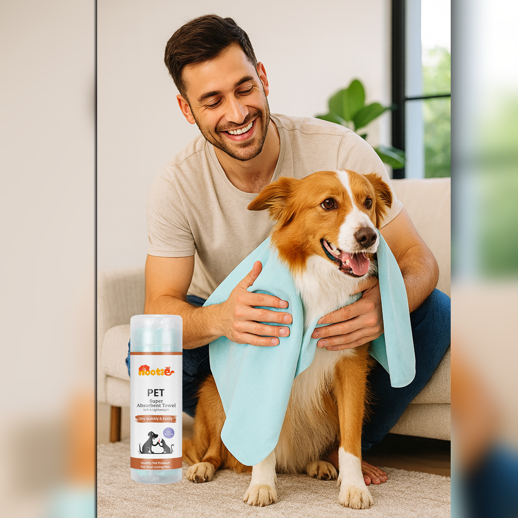 Made from high-grade PVA with antibacterial treatment, this reusable towel absorbs 8× its weight in water, speeding up drying while reducing odour and bacteria growth. The soft chamois-like texture is gentle on skin and safe for sensitive coats. Packed in a reusable tube for hygiene and portability. Product Highlights ✅ Dries your pet 3× faster with super-absorbent PVA ✅ Prevents odour & mould with antibacterial technology ✅ Reusable up to 100 washes for long-lasting value ✅ Soft, gentle texture—perfect for sensitive skin ✅ Instantly reactivates with water for quick reuse ✅ Comes in a compact travel tube for easy storage ✅ Tear-resistant PVA ensures long-term durability ✅ Eco-friendly alternative to disposable towels