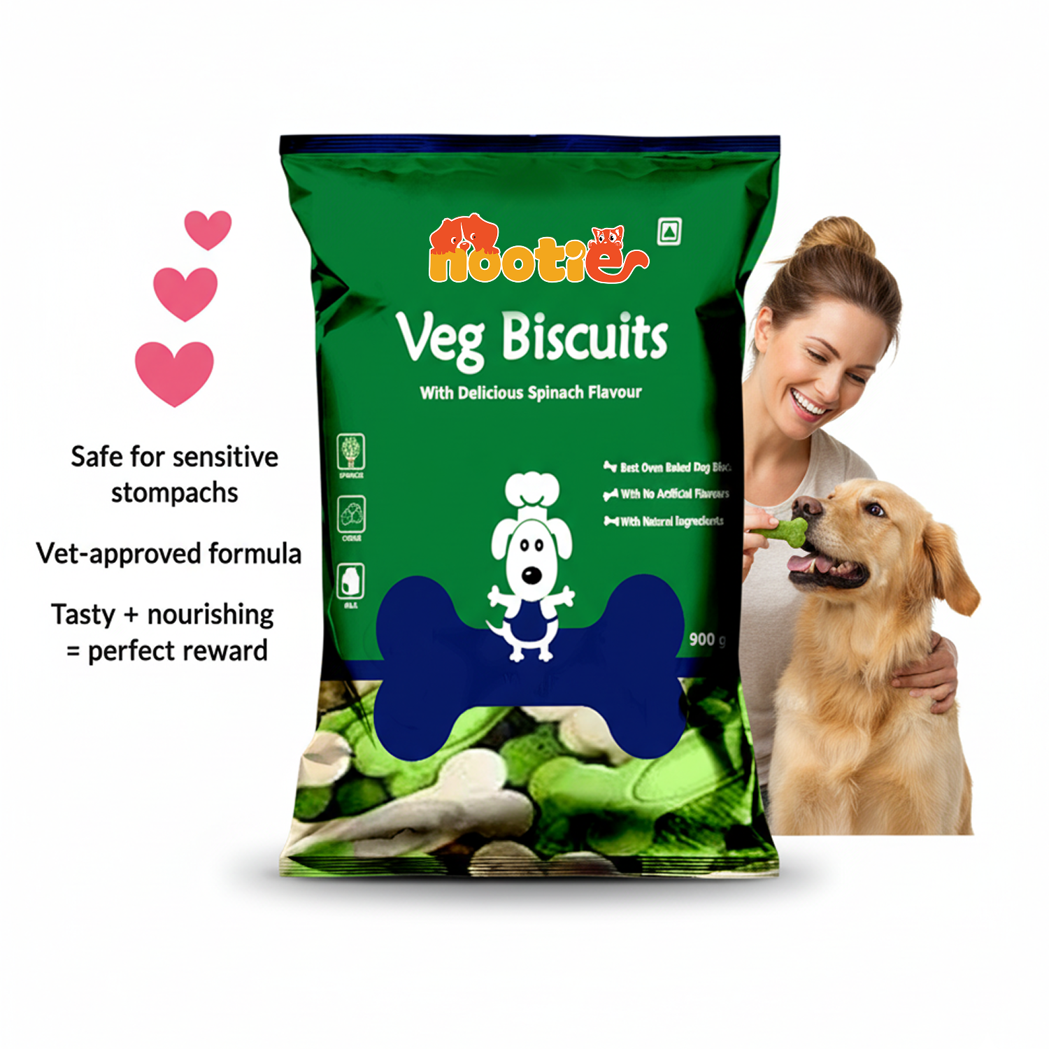 Nootie Veg Biscuits with Spinach Flavour for Adult Dogs (900g) | 100% Vegetarian, High-Fibre, Nutrient-Rich Treats